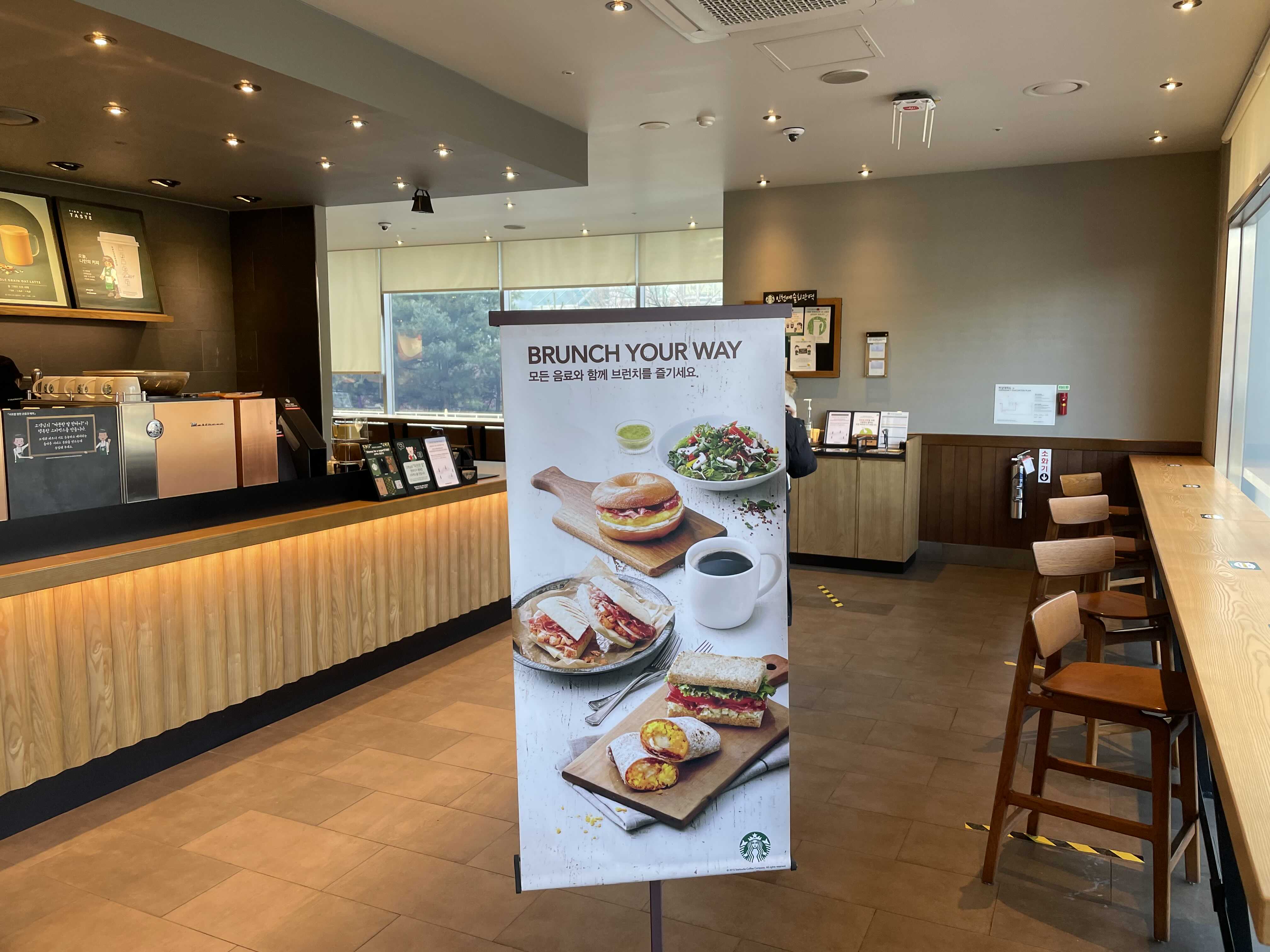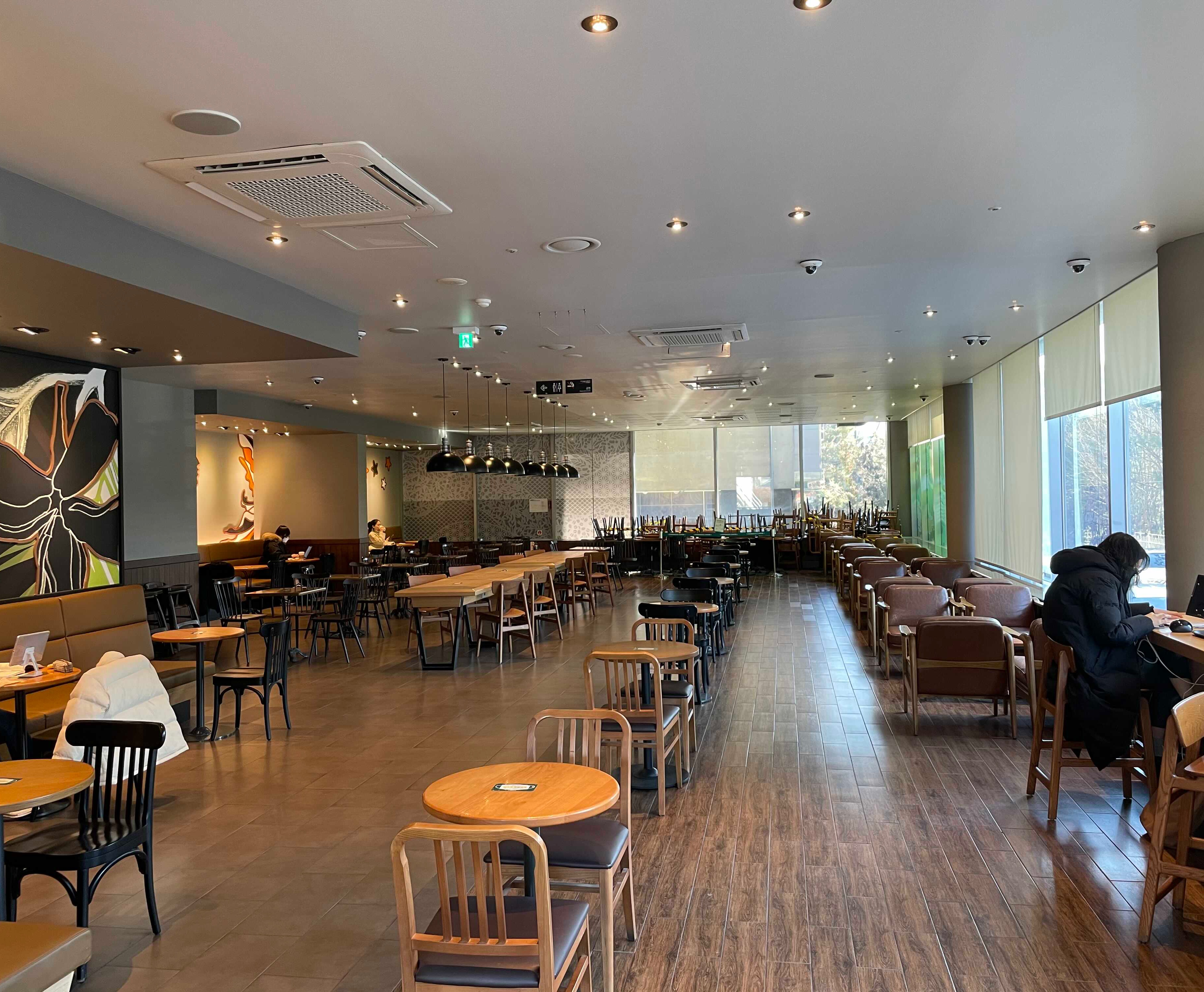 스타벅스도 사회적거리두기의 완화 시행으로 매장에 손님들이 다시 앉을 수 있게 되었다.