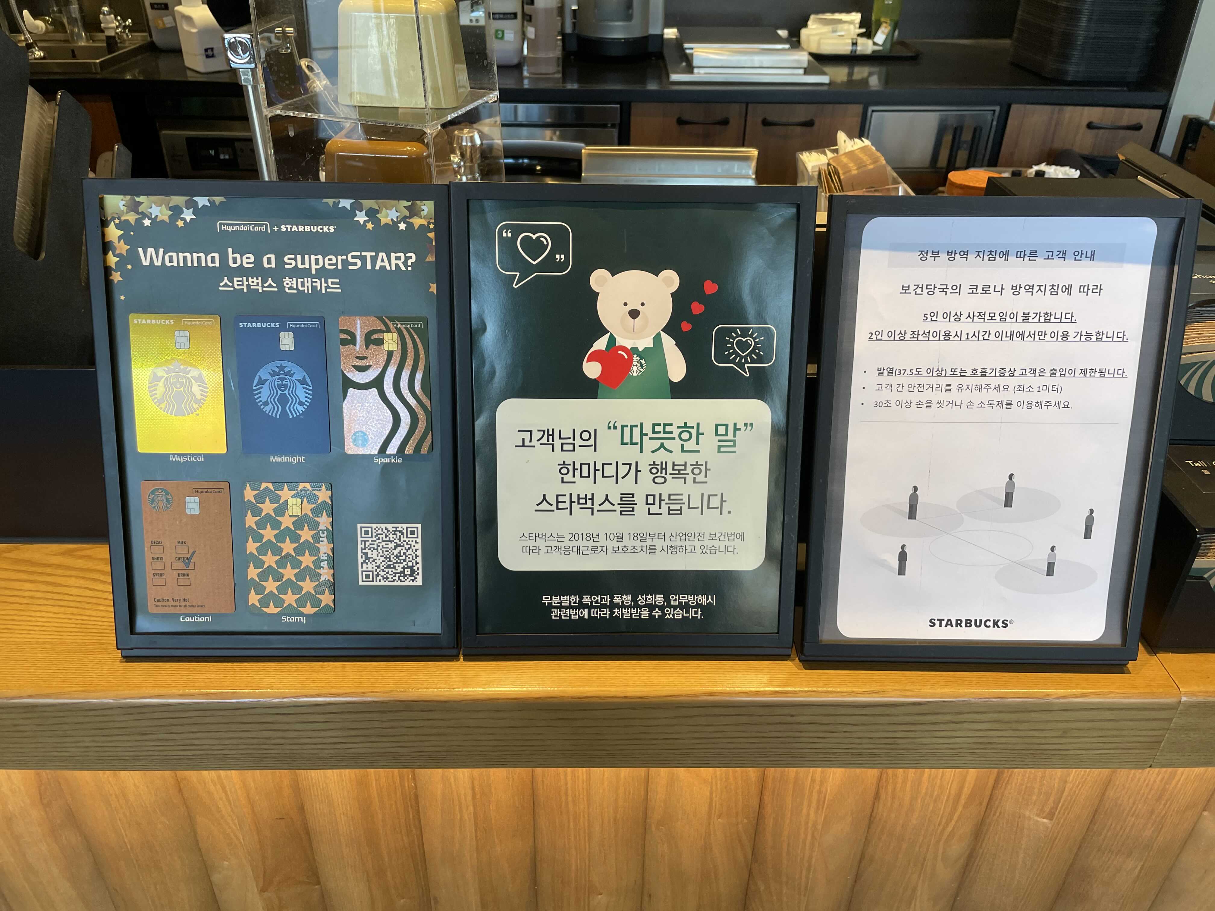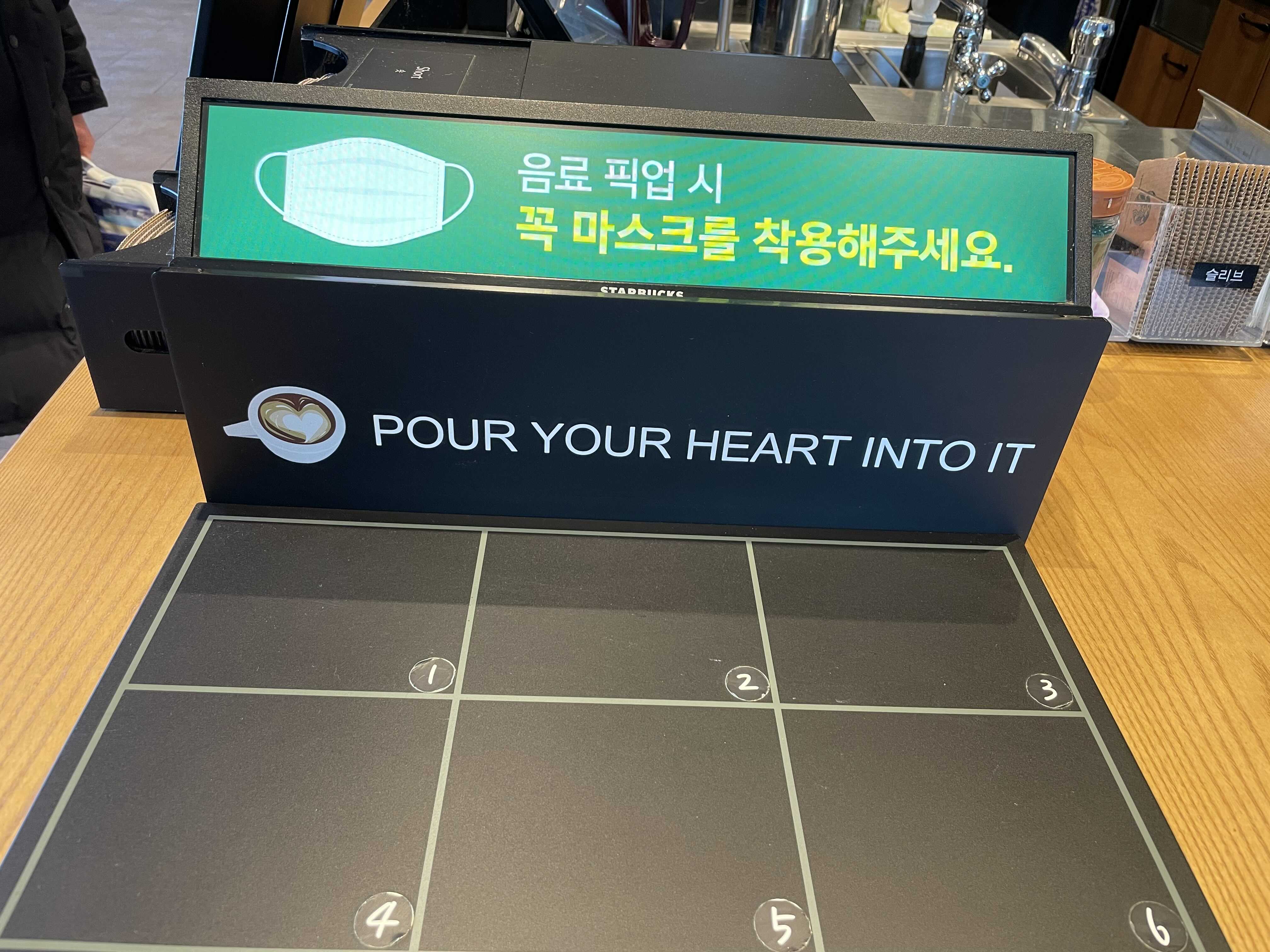 스타벅스에서는 음료를 마시는 때를 제외하고는 무조건 마스크를 다시 착용하고 있어야한다는 점!