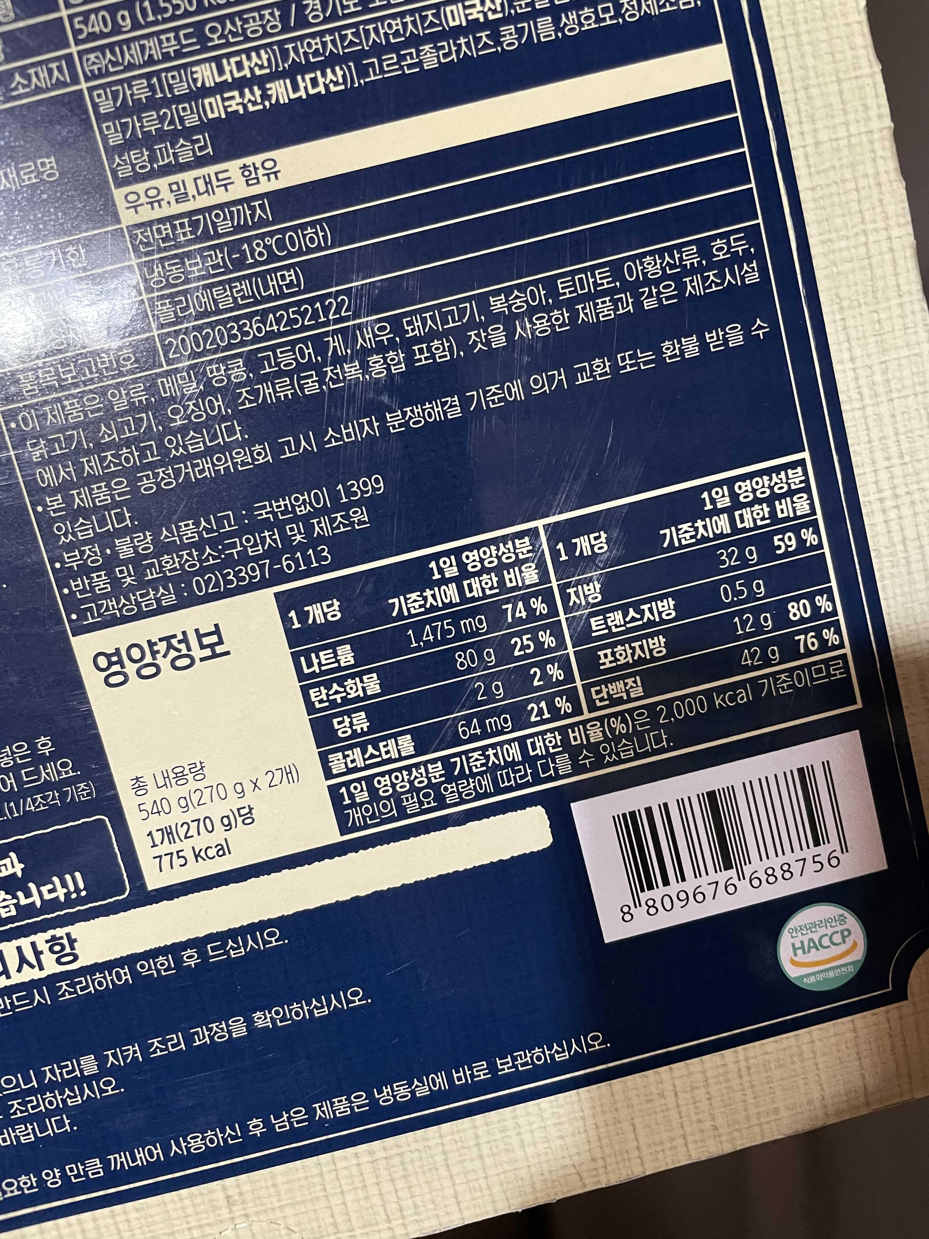 일단 노브랜드 고르곤졸라피자 박스 뒷면에는 여러가지 우리가 알아야 할 사항들이 나와있다.