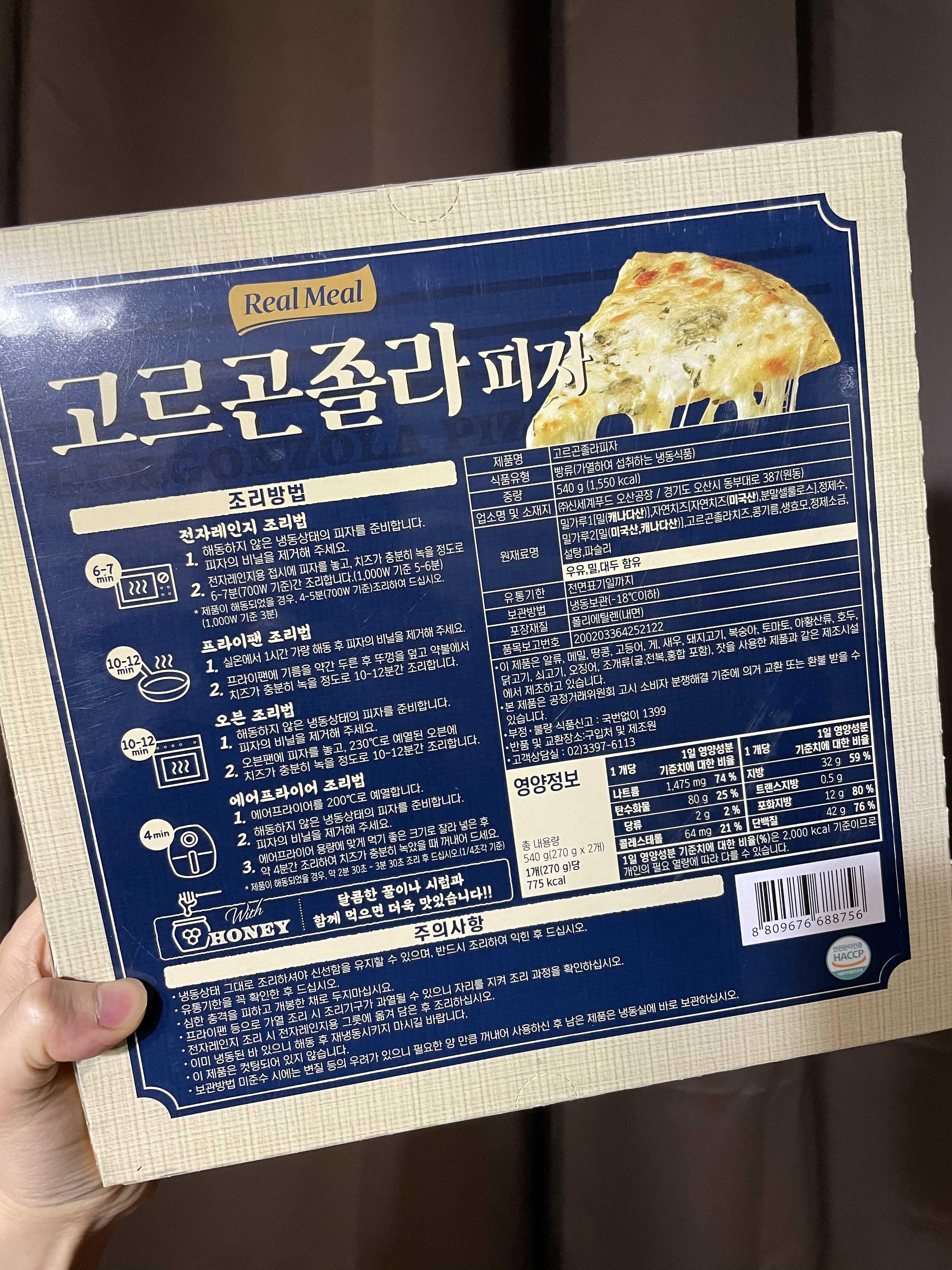 일단 가격만 본 후에 다른건 보지 않고 집으로 주워온 노브랜드 고르곤졸라피자.
