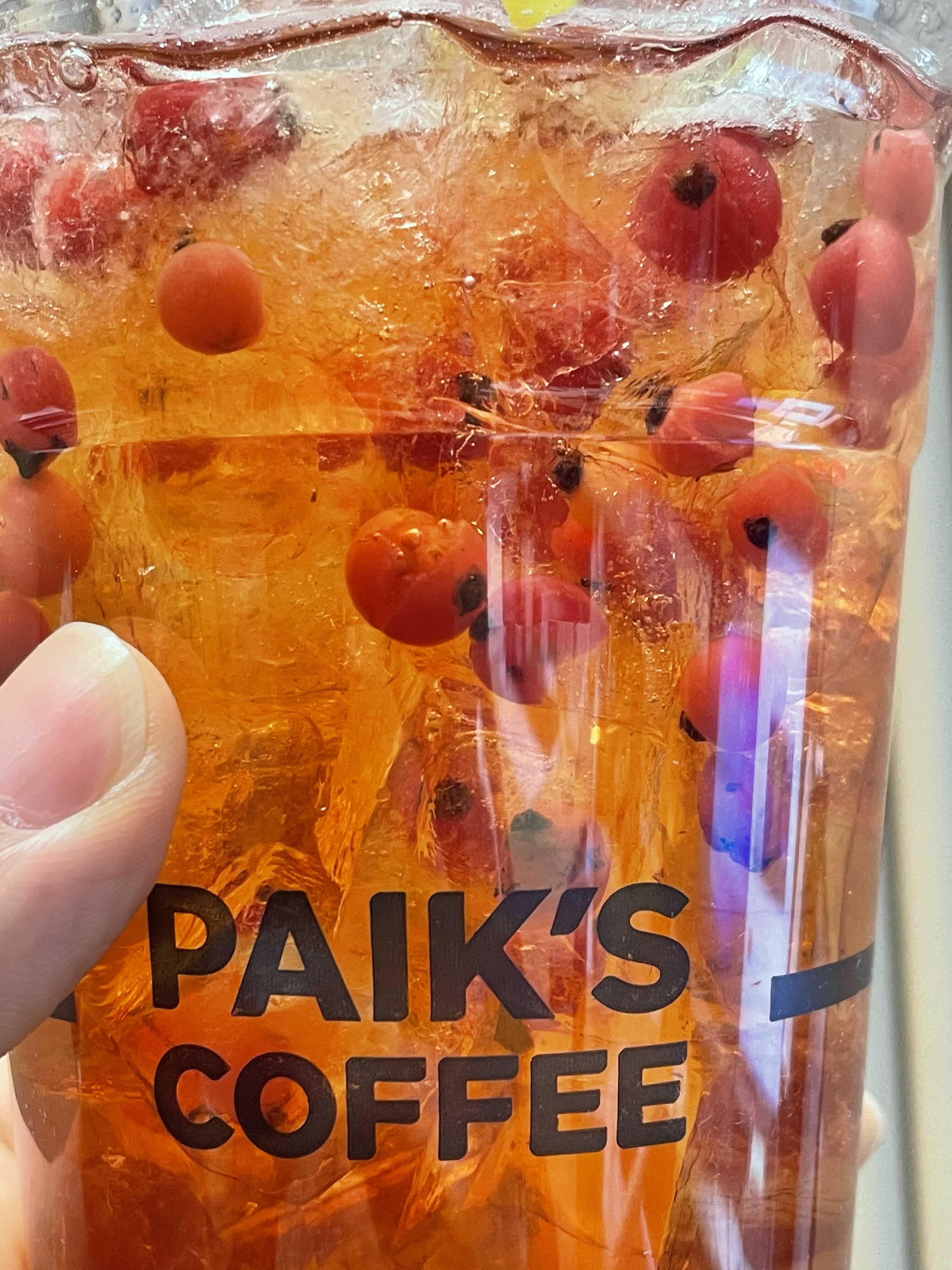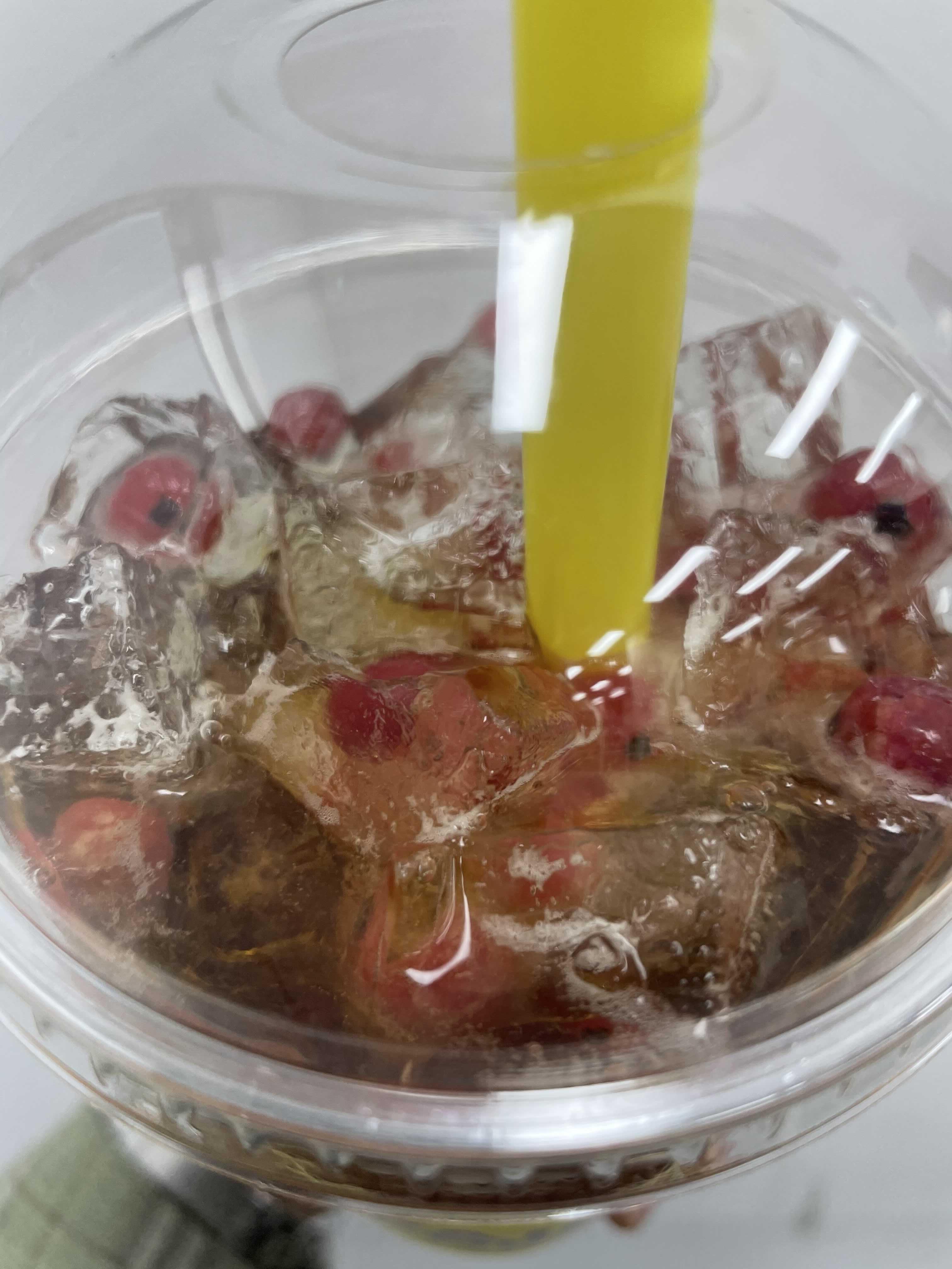 빽다방 레드불꽃파워를 주문하고 가장 신기했던 건 음료 위에 둥둥 떠있는 과일(?)이었다.
