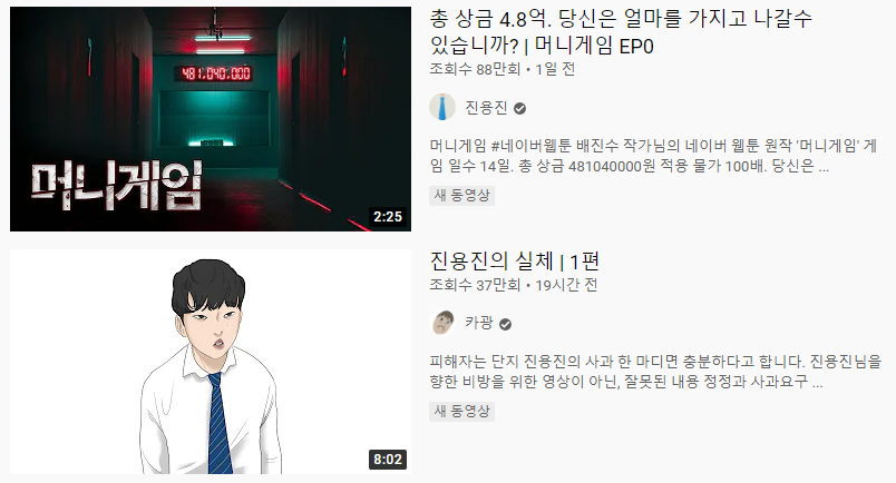 유튜브 컨텐츠로 돌아온 웹툰 머니게임(+원작 결말)