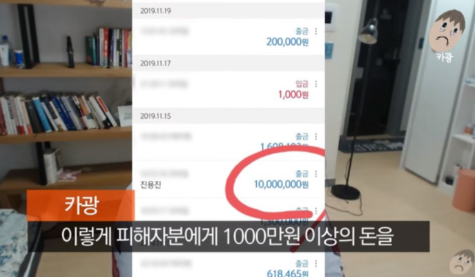 1000만원을 빌린 사실에 대해서는 "A씨는 당시에 본인이 국비지원교육을 받고 있어서 수입이 있을 경우에 지원이 끊기게 될 것을 우려해서 본인이 업소에서 버는 돈 등을 제 계좌(진용진 계좌)로 대신 받을 수 있냐고 물어봤고, 저는 당연히 거절 했습니다."라고 말했다. 하지만 막무가내로 방송 중 공개된 제 계좌에 1000만원을 보내면서 '이제 돈 보냈는데 어쩔래'라는 식으로 나왔으며, 계좌를 제발 다시 알려달라고 사정사정해서 돈을 다시 돌려주었던 것"이라고 해명했다.