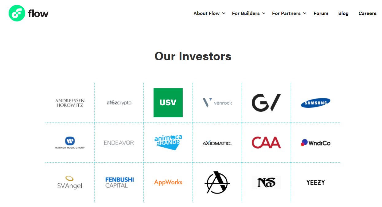 플로우 코인의 공식 사이트에 들어가봐도 삼성이 투자자라고 정확히 나와있다. 플로우를 선보인 대퍼랩스는 플로우의 개발을 위해서 2020년 1100만 달러 규모의 투자를 받았다. 삼성전자 산하의 벤처투자부문인 삼성넥스트 외에도 구글의 모회사인 알파벳 벤처투자, 록펠러의 투자회사 벤록 등 유명 벤처 펀드들로부터도 투자를 유치했으며 그 강력한 경쟁력은 말하면 입만 아플것이다.