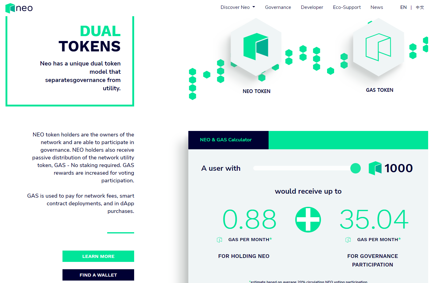 네오로 ICO 등을 참여할 때 차감되는 NEO가 손실되는 불만을 어느정도는 해소해주기 위해서 네오를 보유한 사람들에게는 꾸준히 배당 혹은 이자의 개념으로 가스(GAS)가 지급된다.