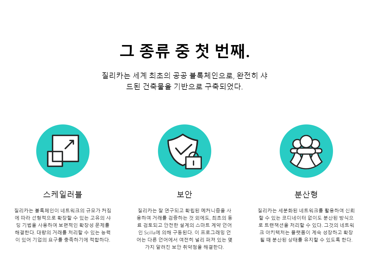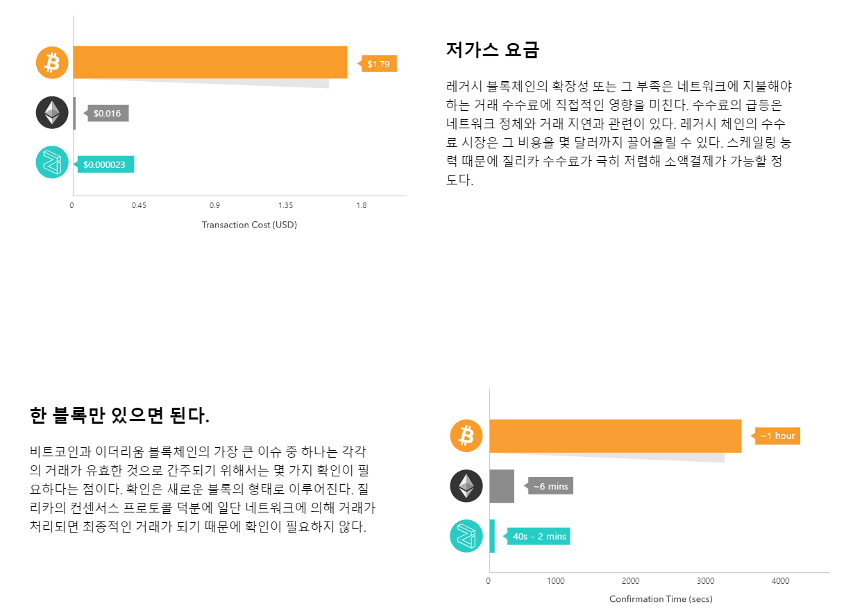 질리카는 이렇게 많이 뒤쳐진 비트코인과 이더리움의 단점으로 알려진 트랜잭션 속도를 비약적으로 상승시켜서 기존 암호화폐 대장급들에게 도전하고 있는 것이다.