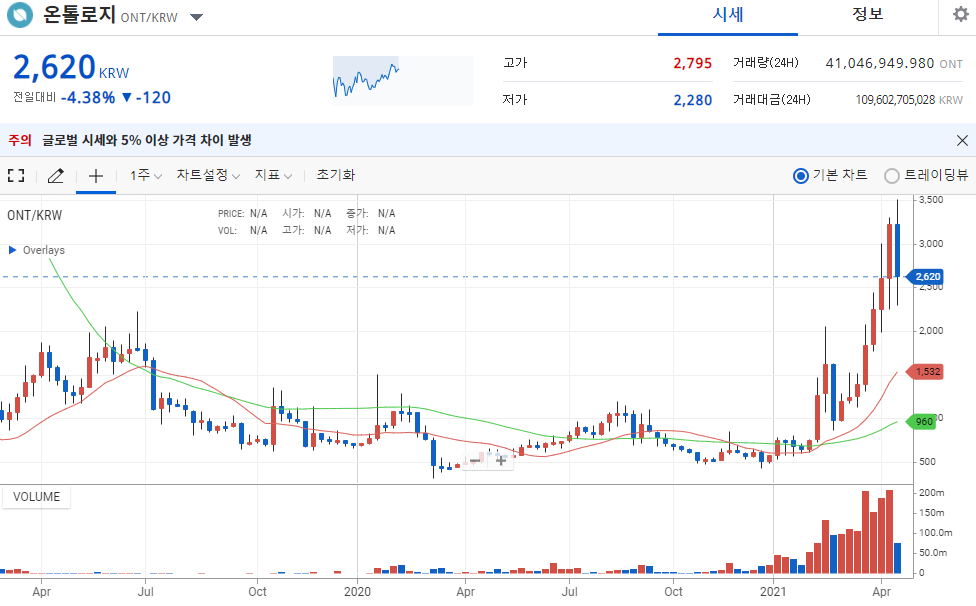그런 의미에서 중국코인 중 하나라고 할 수 있는 온톨로지는 상승여력이 충분하다고 생각한다.