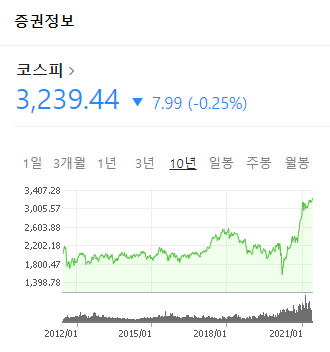 한국의 코스피지수도 최근들어서 어마어마한 상승률을 기록하고 있는 것은 사실이지만, 2020년 코로나 사태 이전에는 거의 9년 이상을 횡보하는 모습을 보였으며 코스피지수는 과거에는 거의 변동폭이 없는 수준이었다. 하지만 미국의 S&P 500 지수를 추종하는 ETF의 경우는 지수를 따라서 우상향하는 모습을 과거의 데이터로 보여주고 있기 때문에 되도록 S&P 500 지수를 추종하는 상품에 투자하기를 권한다.