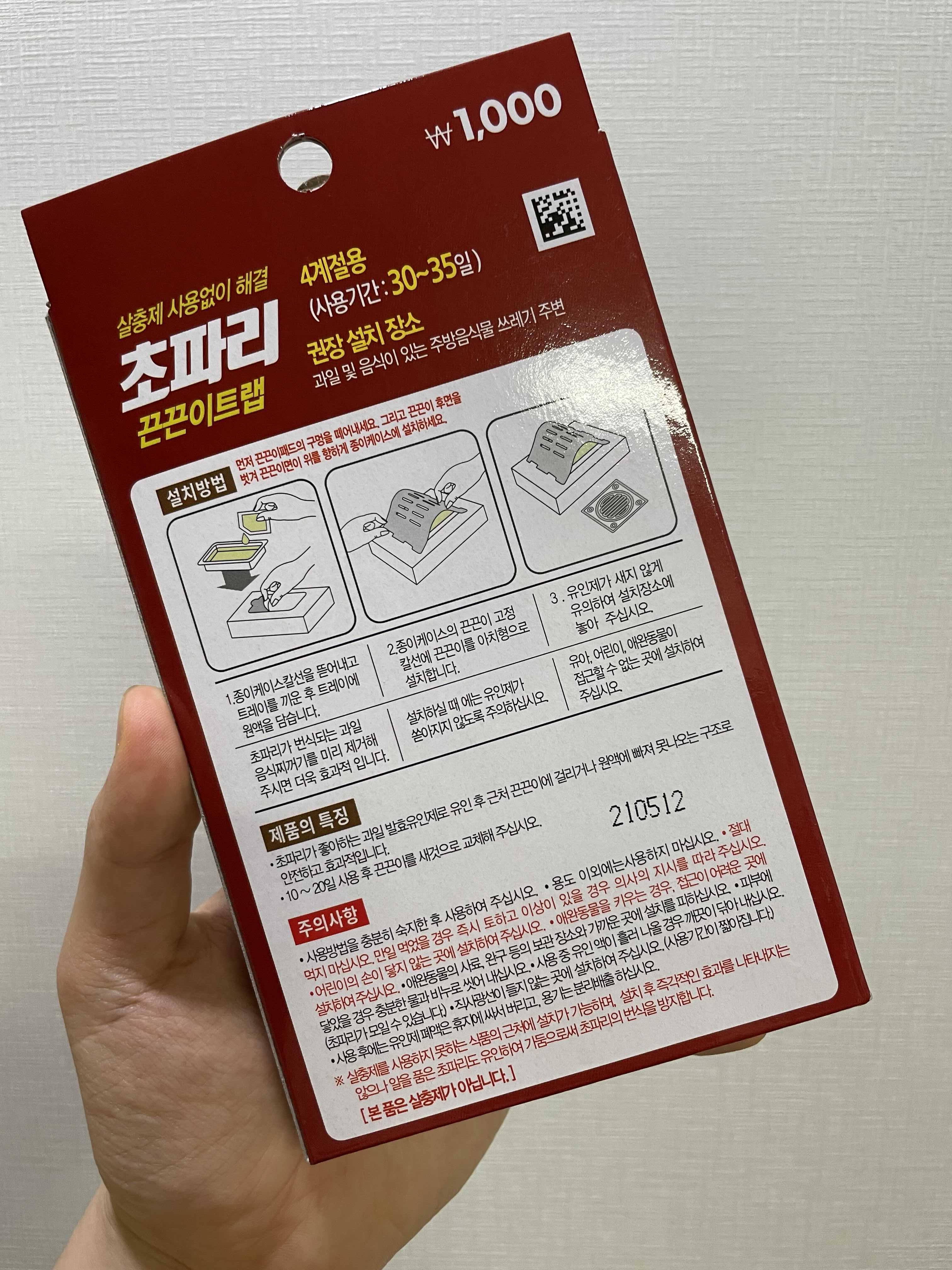 만약 초파리때문에 마음고생을 하고 있거나 스트레스를 받고 있다면 단돈 천 원 투자해서 집에서 아예 초파리를 없애버리는 것을 강력히 추천한다.