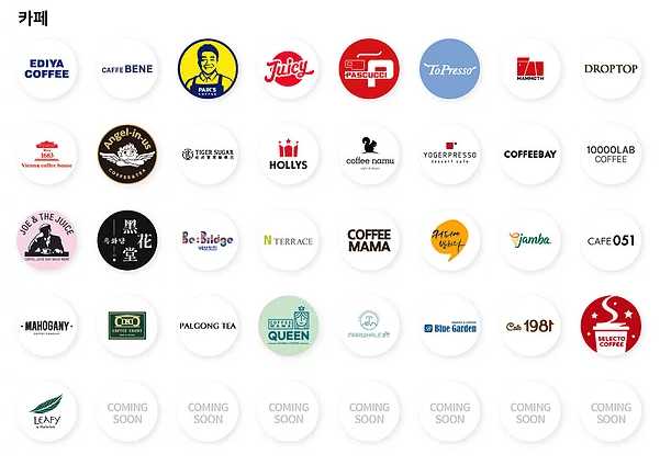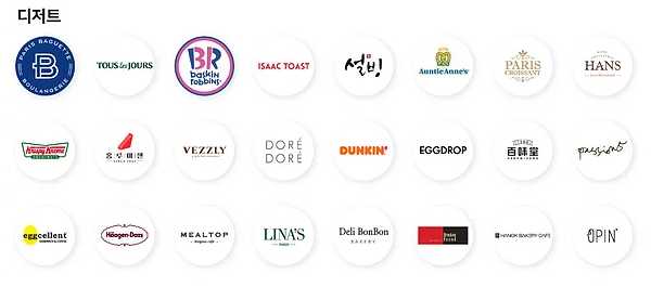파리바게트, 뚜레쥬르, 파리크라상, 던킨도너츠, 명랑핫도그, 빽다방, 크리스피그림, 엔젤리너스커피, 베스킨라빈스, 카페베네, 설빙, 이디야커피 등등 다양한 사용처를 확인할 수 있다.