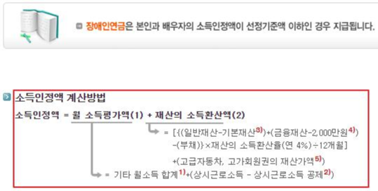 장애인연금 수급대상 소득인정액 계산방법