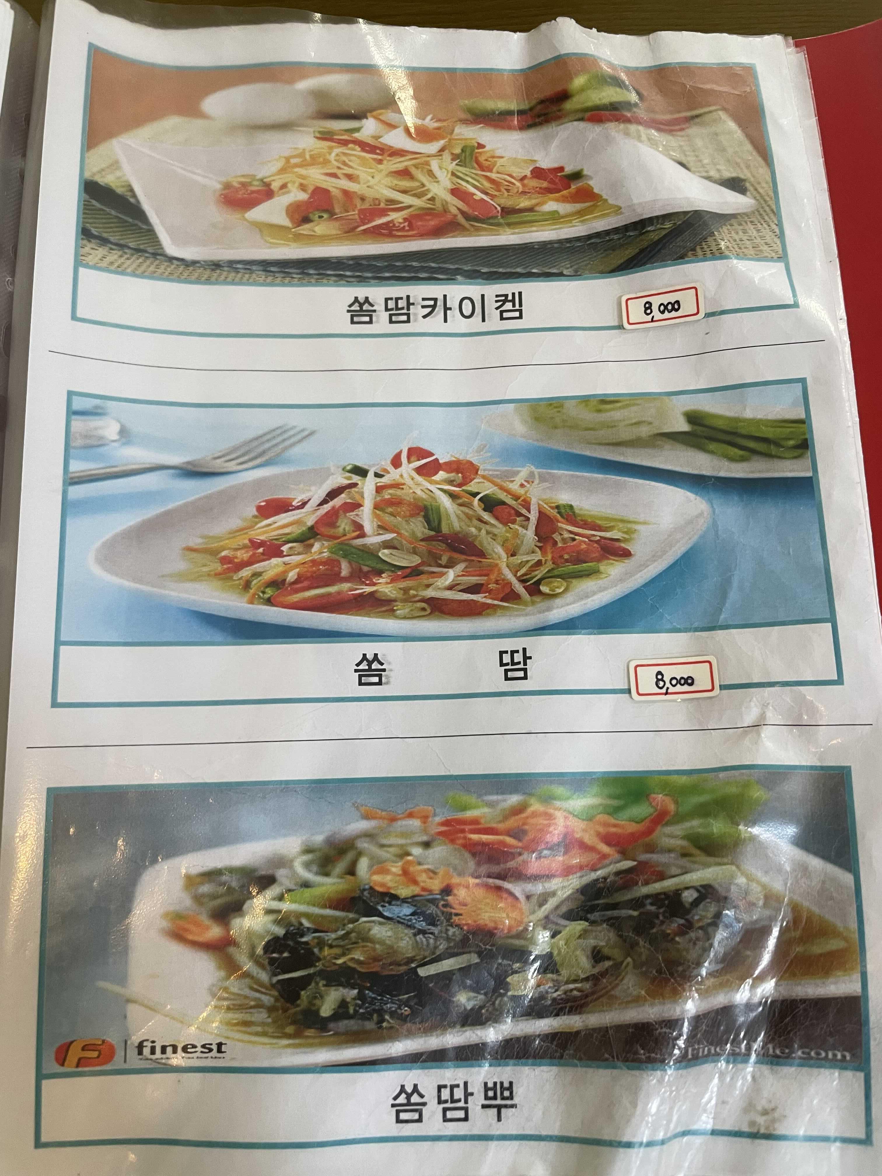 그리고 사실 태국음식점에서는 우리가 먹어보고자 하는 메뉴를 팔지 않았다.(얌문쌘)