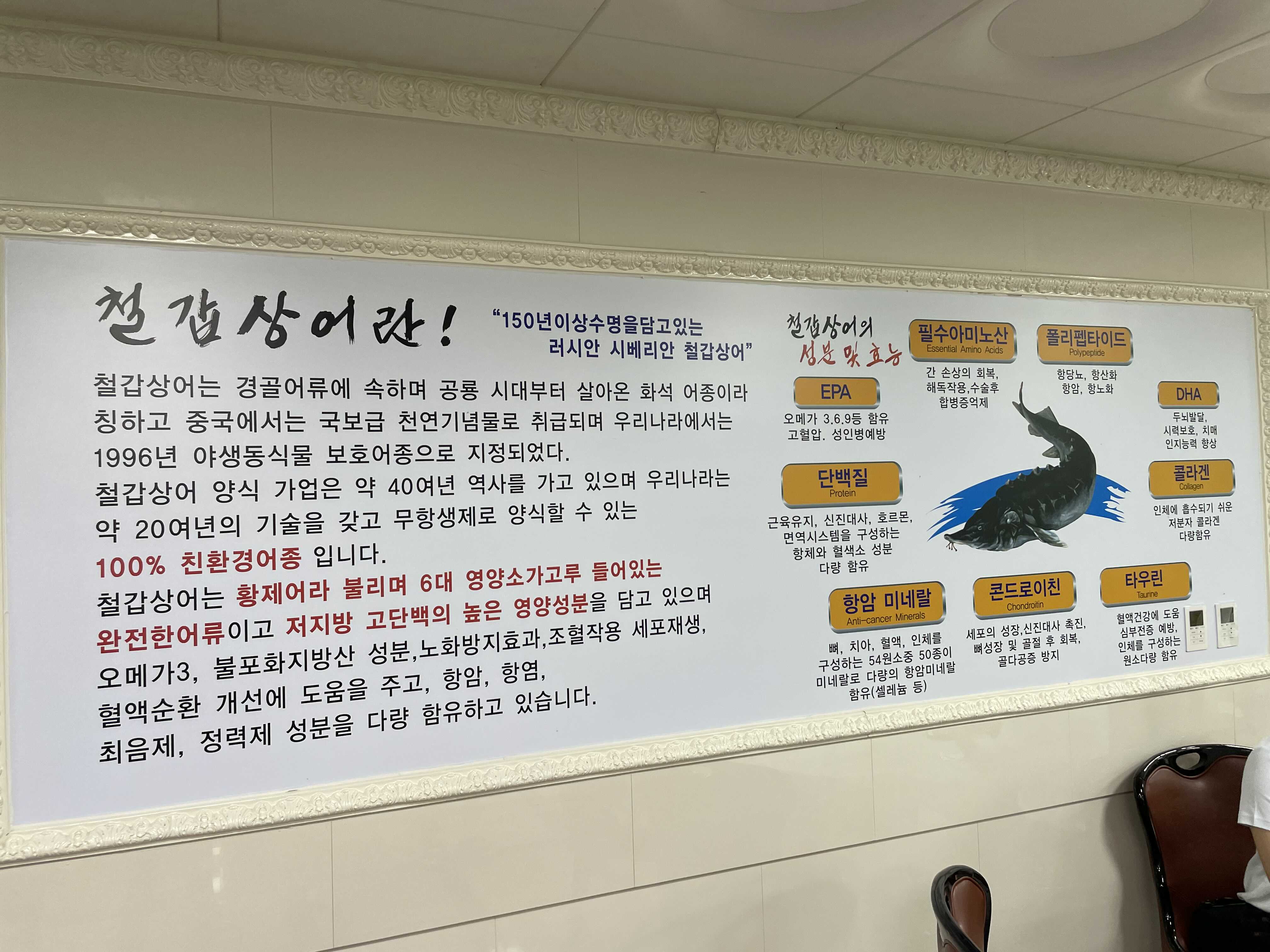 철갑상어도 아래 사진에 디테일하게 설명이 쓰여있는데 다음에 기회가 된다면 꼭 먹어보고 싶긴 하다.