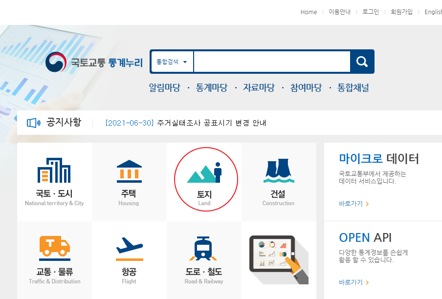 로그인을 한 후에 위의 사진에 보이는 '토지'부분을 클릭해서 다음화면으로 넘어가준다.