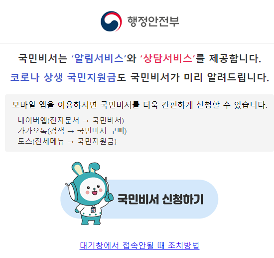 국민비서 구삐를 신청하는 방법은 크게 2가지로 나뉜다. 국민비서 홈페이지에서도 할 수 있고, 정부24 홈페이지를 통해서도 할 수 있다.