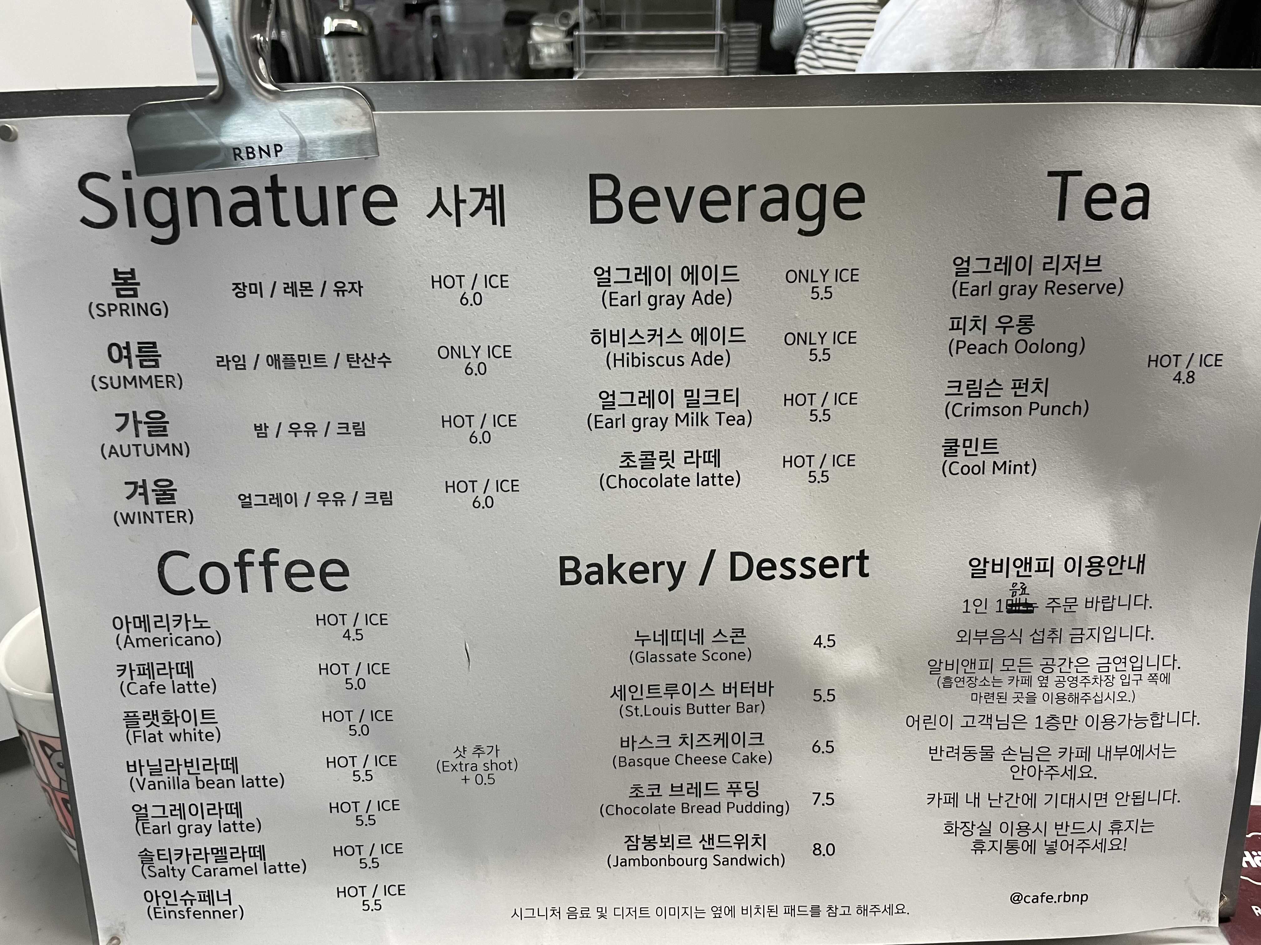 시그니쳐 음료가 독특하게 봄/여름/가을/겨울로 이루어져 있으며 '여름' 메뉴는 오직 아이스음료로만 주문이 가능하다. 뭔가 독특하다는 점이 마음에 들었다.