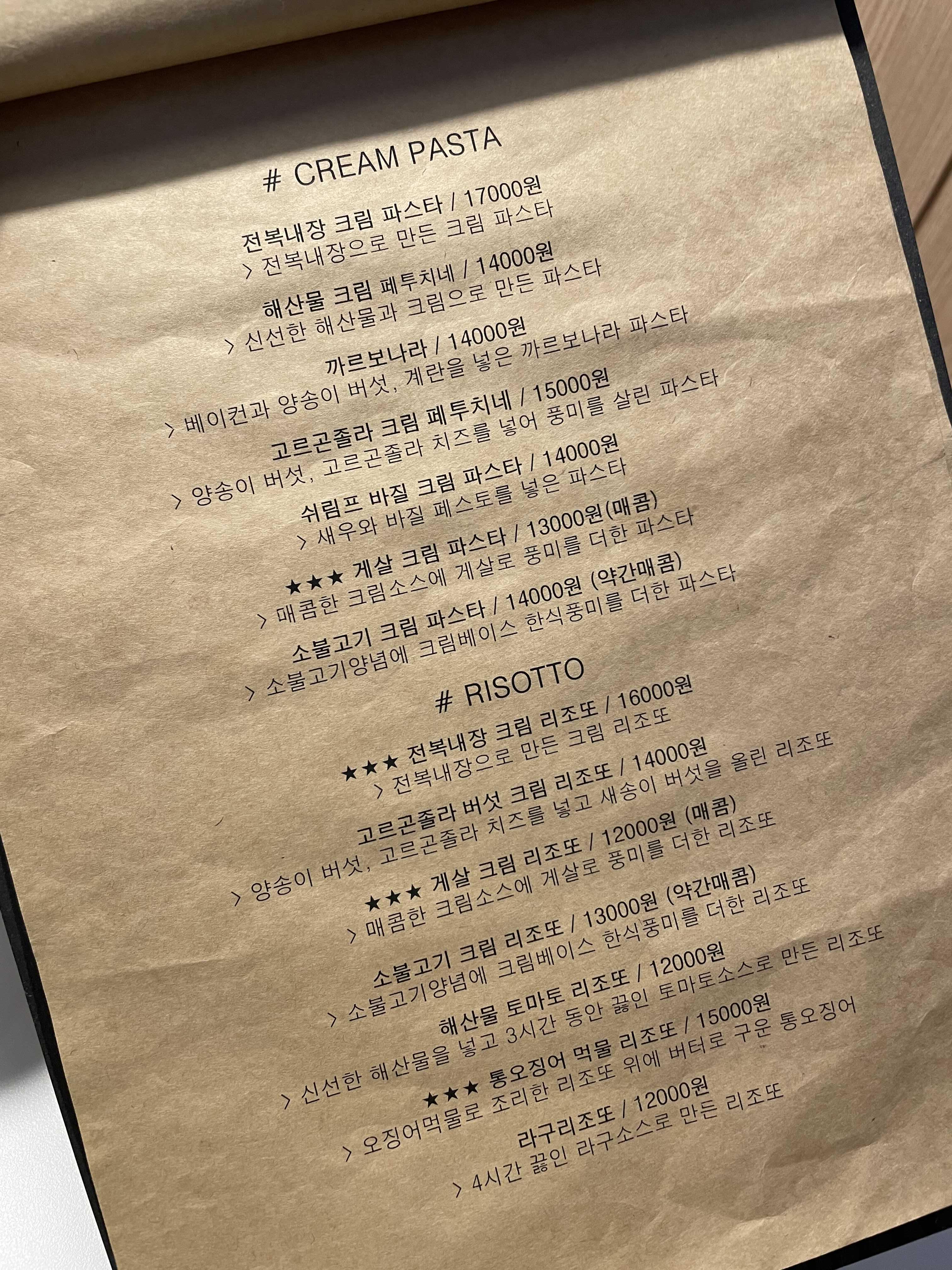 보통은 이렇게 메뉴를 여러 가지 하면 맛있기가 어려운데, 모든 메뉴들이 다 인기가 있었다. 게다가 메뉴판에 보면 메뉴 앞쪽에 별 모양이 3개 붙어있는 메뉴들이 있다.