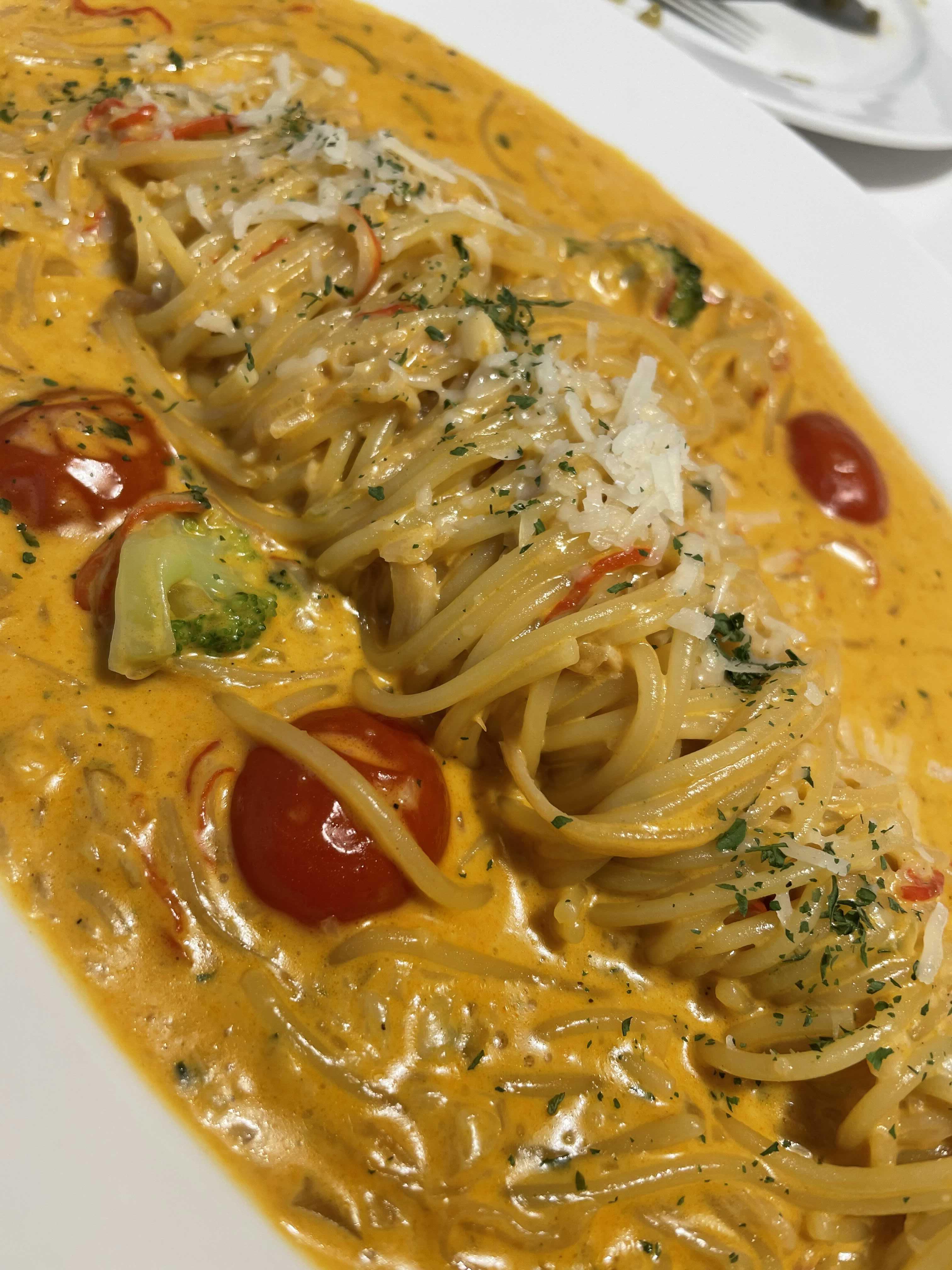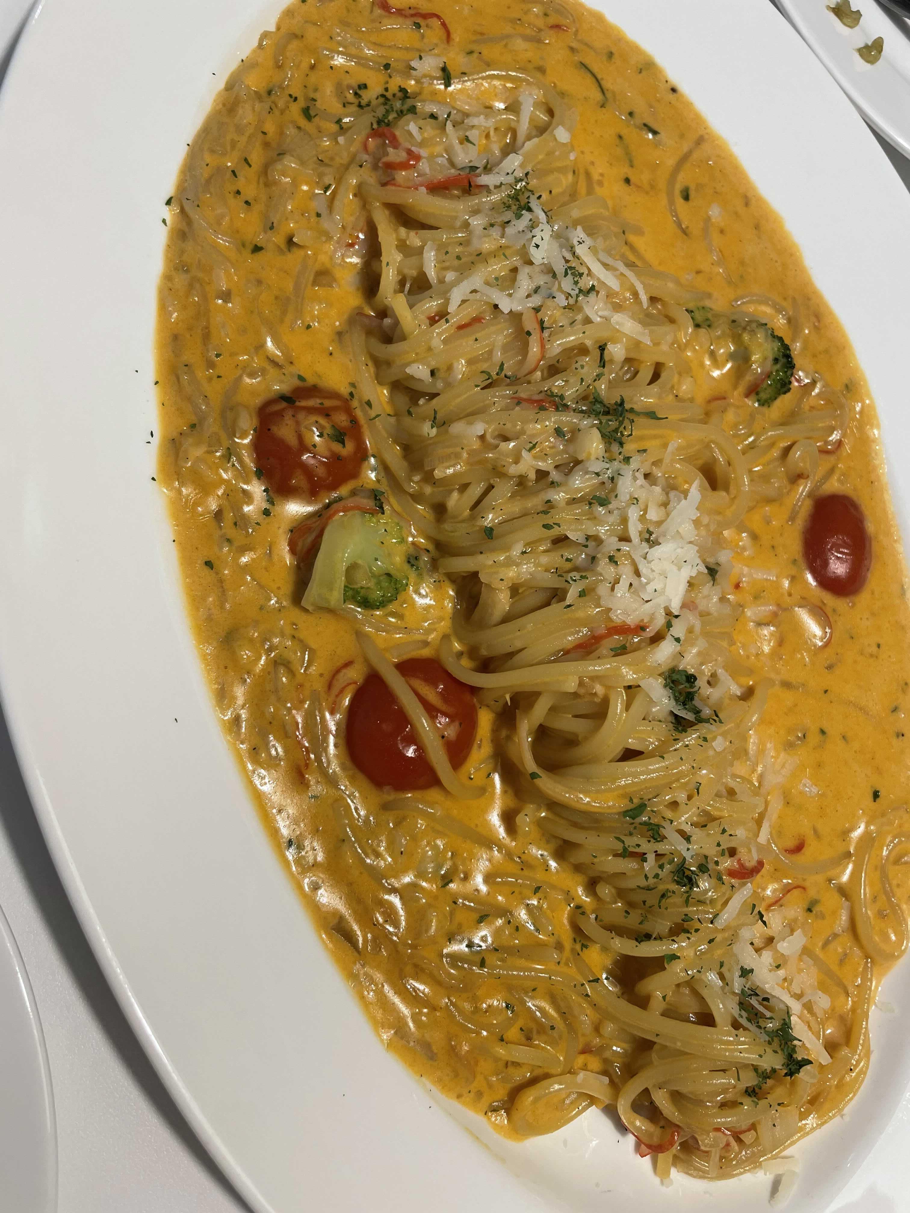 정말 상상도 못 한 맛이었는데, 사실 게살 크림 파스타라서 하얀 소스가 나올 줄 알았는데, 약간 투움바 파스타와 같은 느낌의 빨간 소스가 나와서 놀랐지만, 맛에 더 놀랐다.