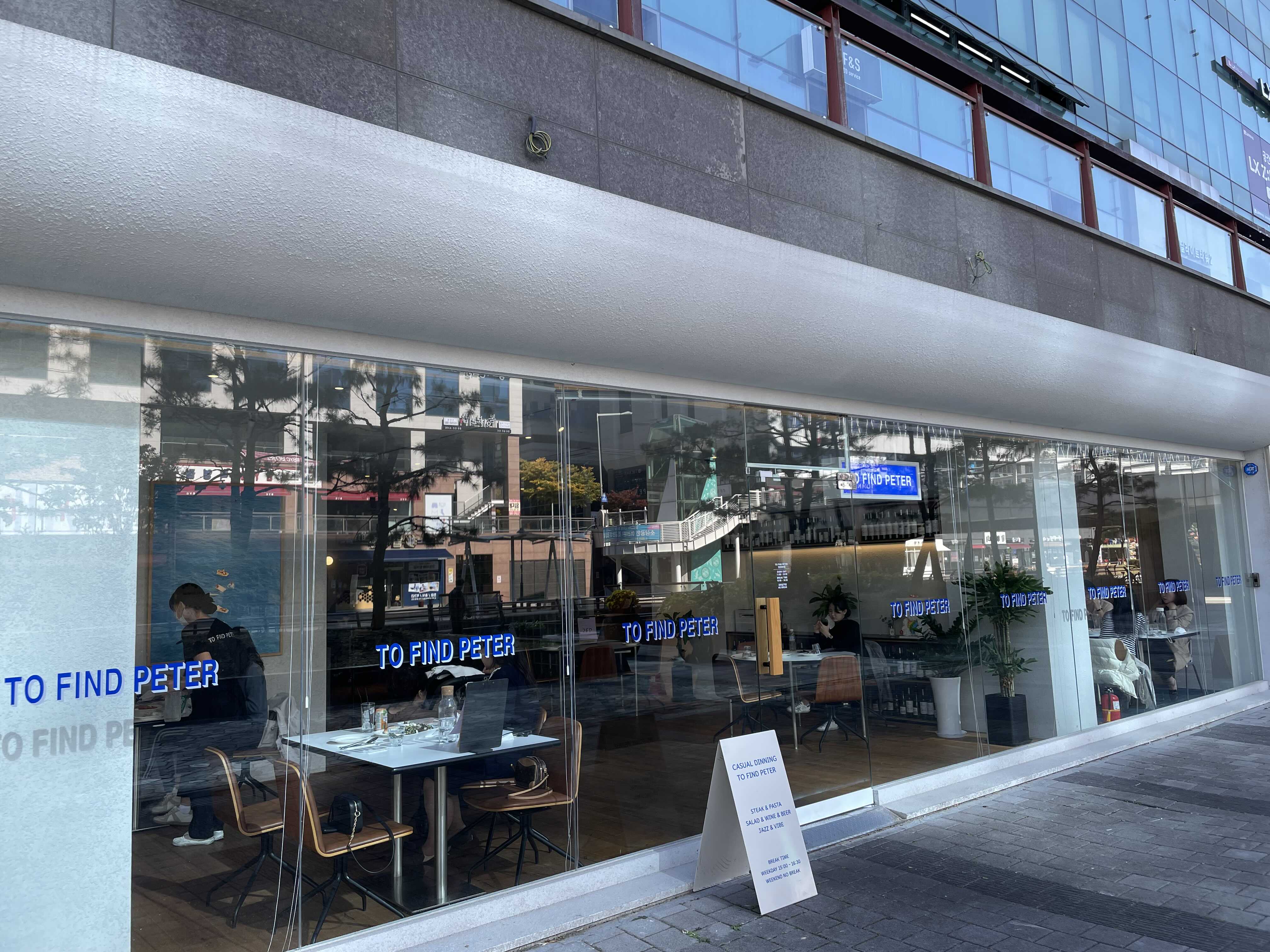 청라 커넬웨이의 수변 거의 끝부분에 위치한 투파인드피터는 통유리로 되어있고, 얼핏 밖에서 보기에는 '카페인가?' 하는 생각이 들게 하는 인테리어를 하고 있다.