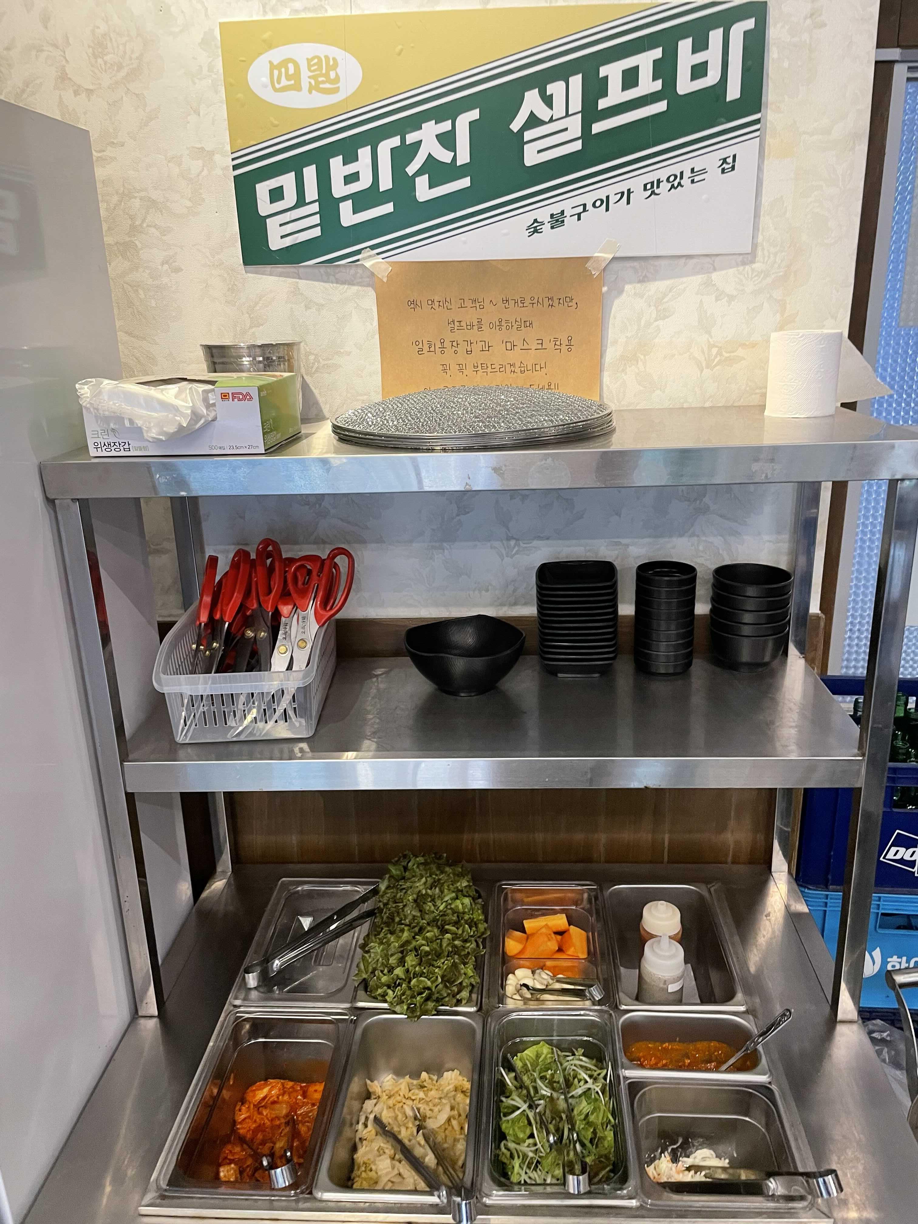 요즘 트렌드에 어울리는 셀프 밑반찬코너, 하지만 밑반찬을 가지러 갈때는 반드시 마스크를 착용하고 가기를 바란다. 기본적인 코로나시대 매너!