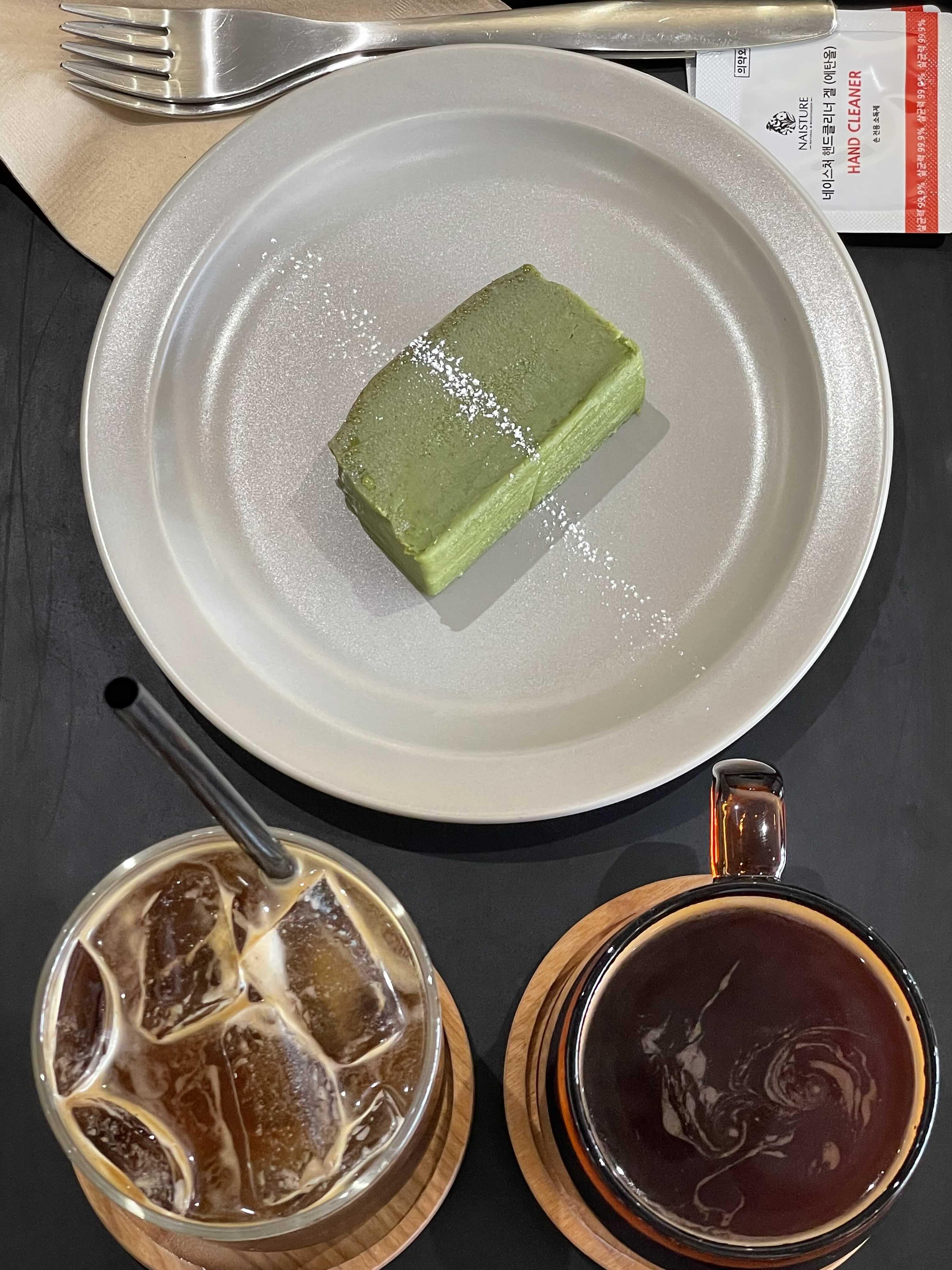 미스티 우드의 원두는 두 종류로 나눠져 있었는데, 하나는 미스티였고, 하나는 우드였다. 두 원두 중 하나는 부드러운 원두였고, 하나는 산미가 강한 원두였는데 나는 개인적으로 산미를 좋아하지 않아서 산미가 없는 부드러운 원두로 주문했고, 디저트 중에서 티라미수와 함께 말차'테린느'라는 처음 보는 디저트도 주문해봤다.