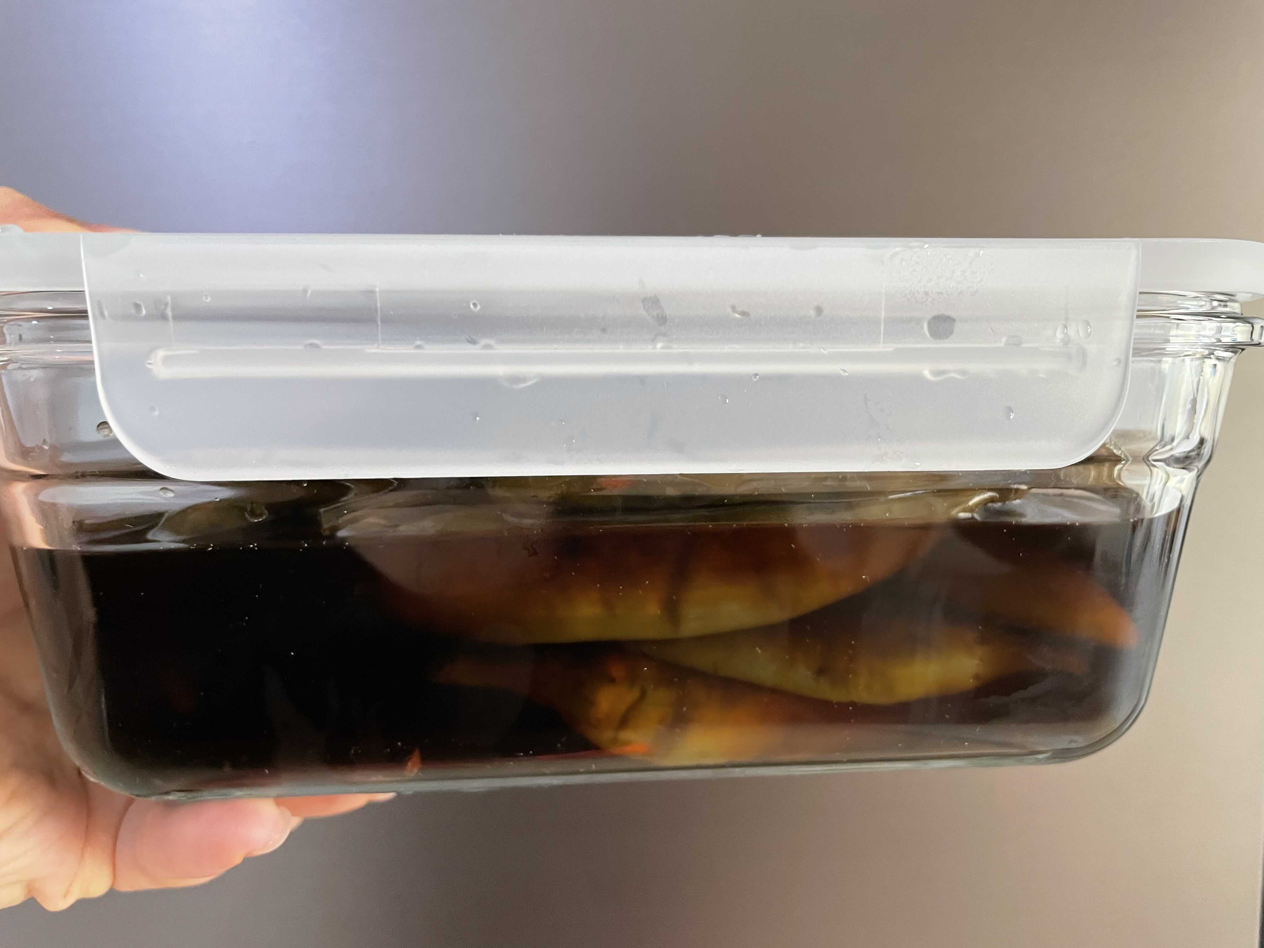 아래는 간장 풋고추절임을 글라스락에 넣어본 사진이다.