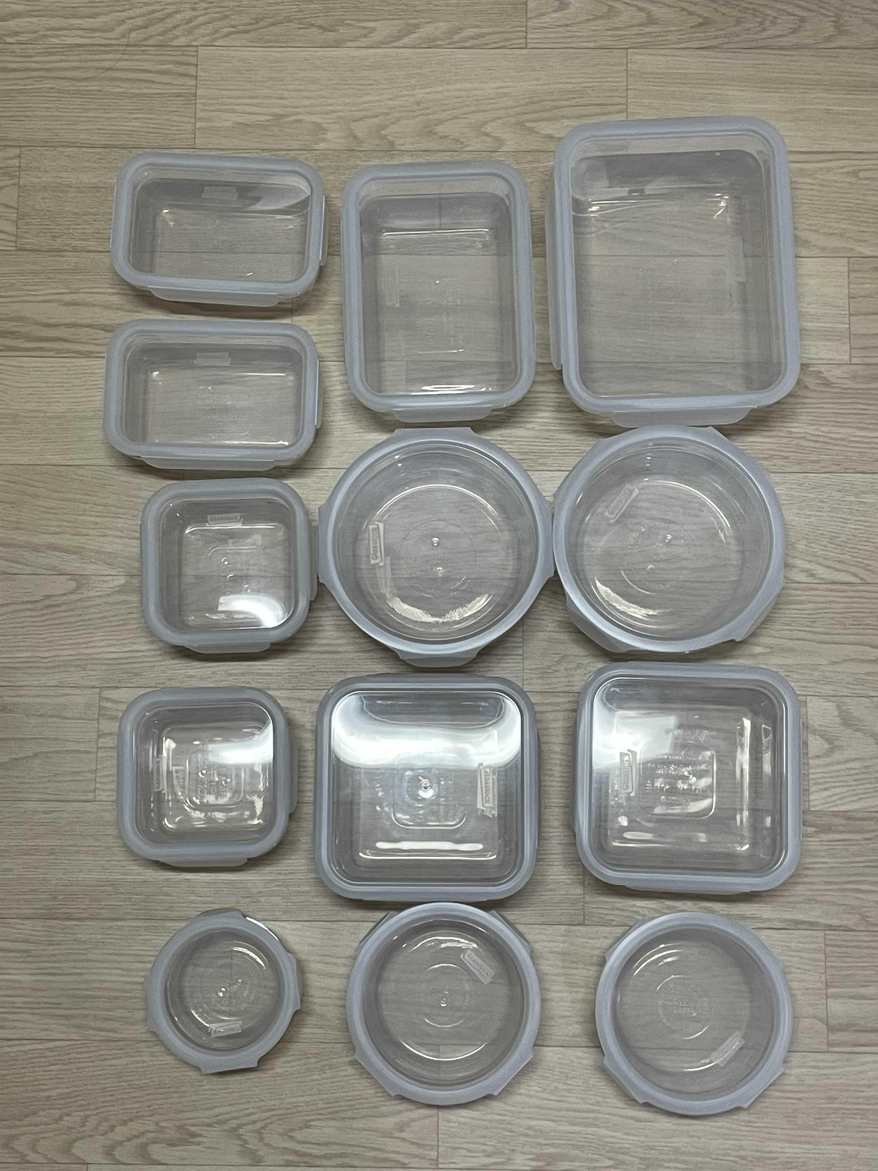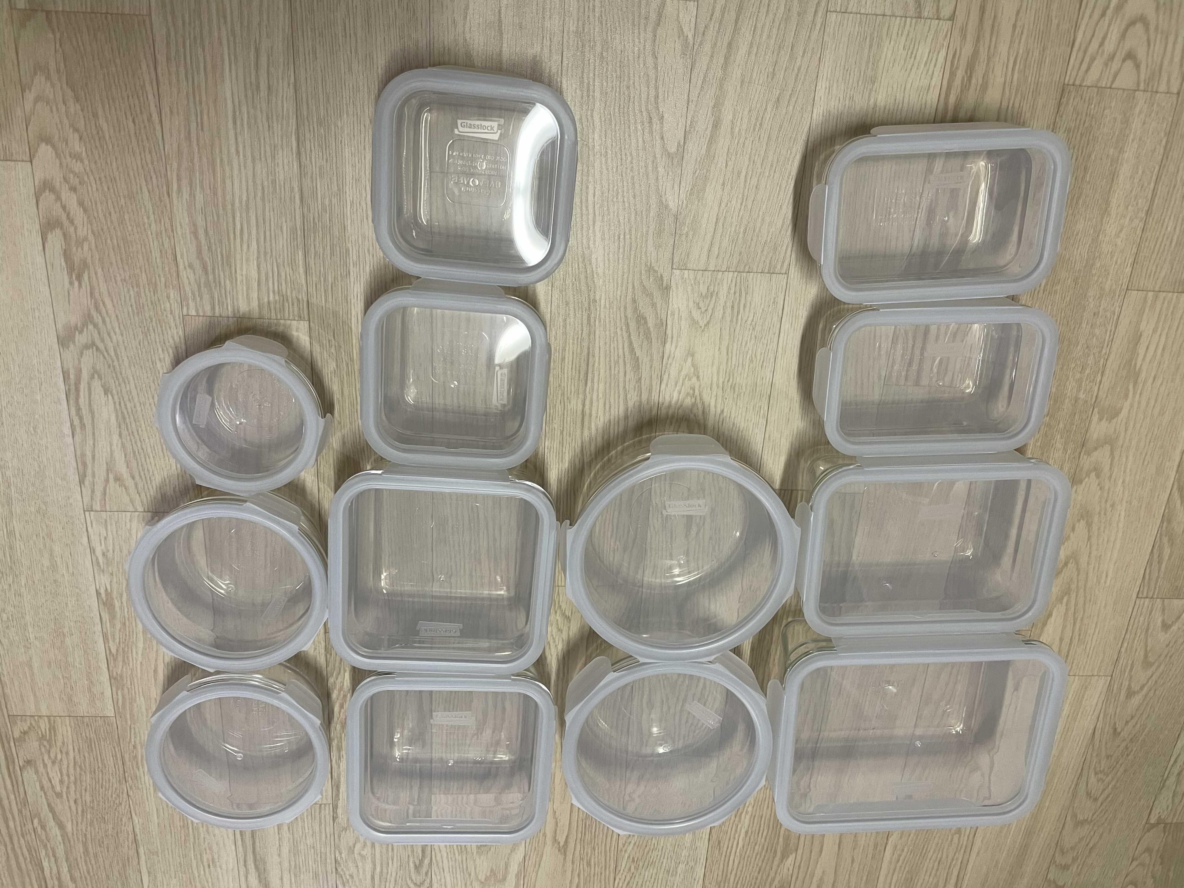글라스락은 아래의 사진처럼 13개의 그릇으로 구성되어 있는데 생각보다 크기도 다양하고, 무엇보다 내부를 투명히 다 들여다볼 수 있다는 것이 가장 큰 장점이다.