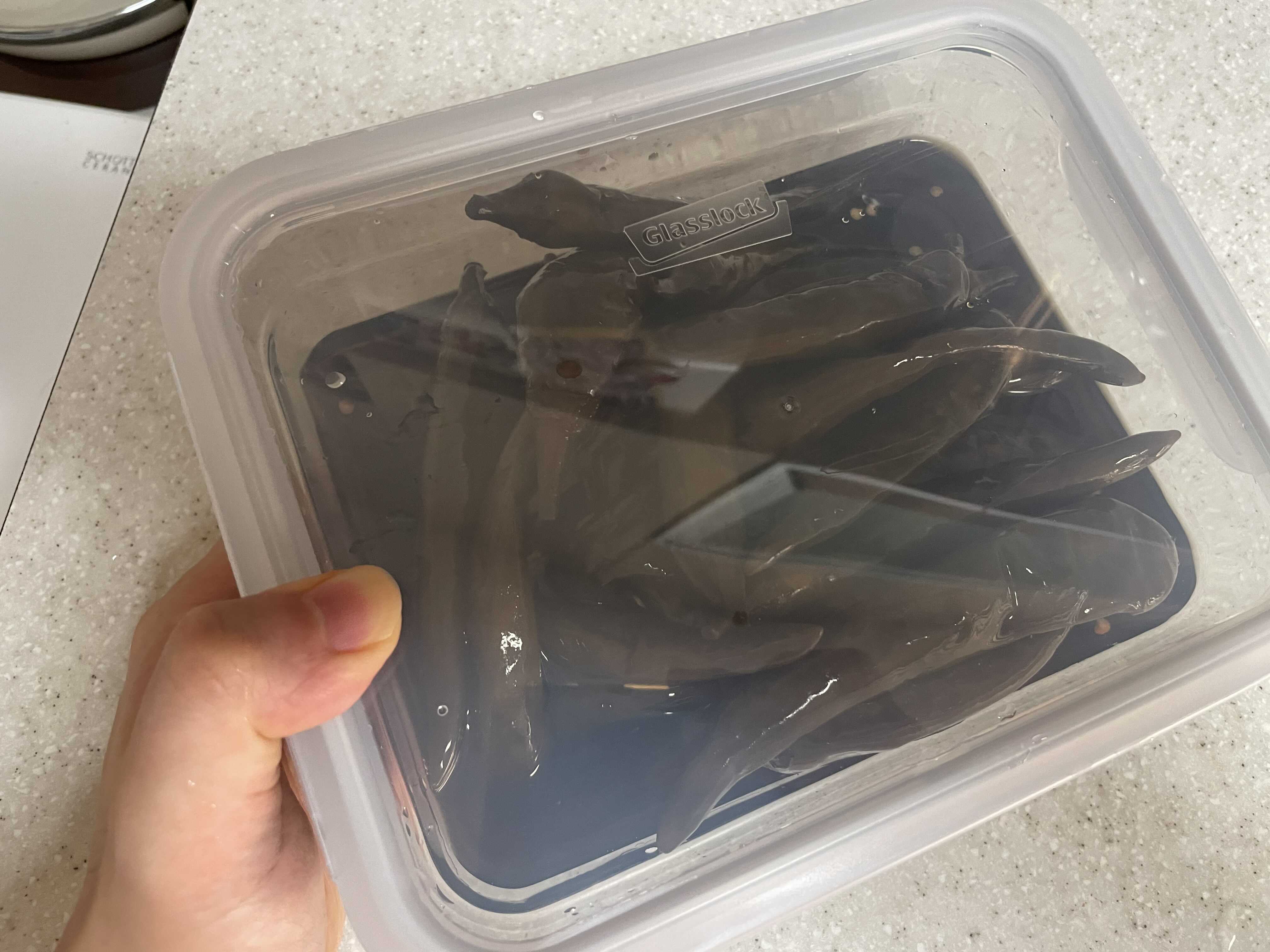 아래는 간장 풋고추절임을 글라스락에 넣어본 사진이다.