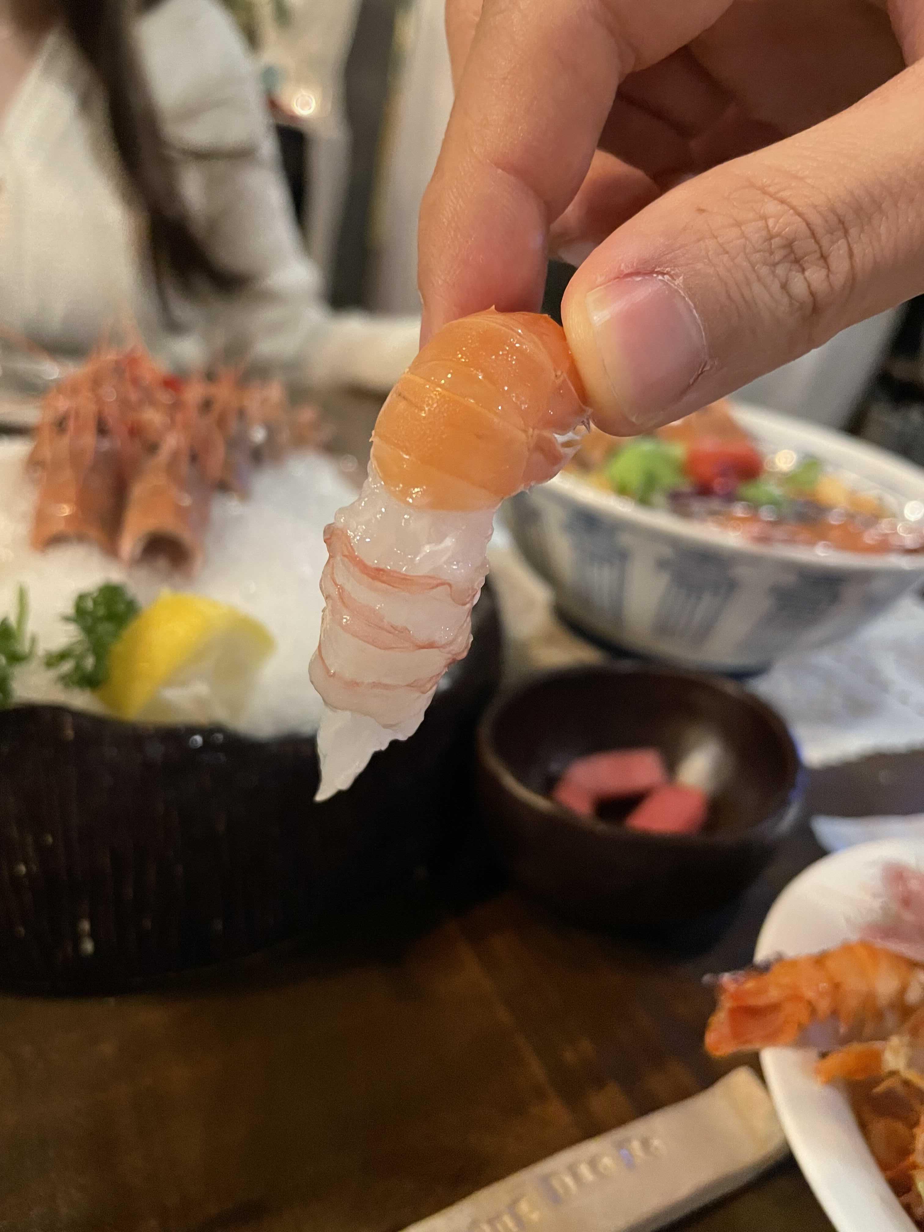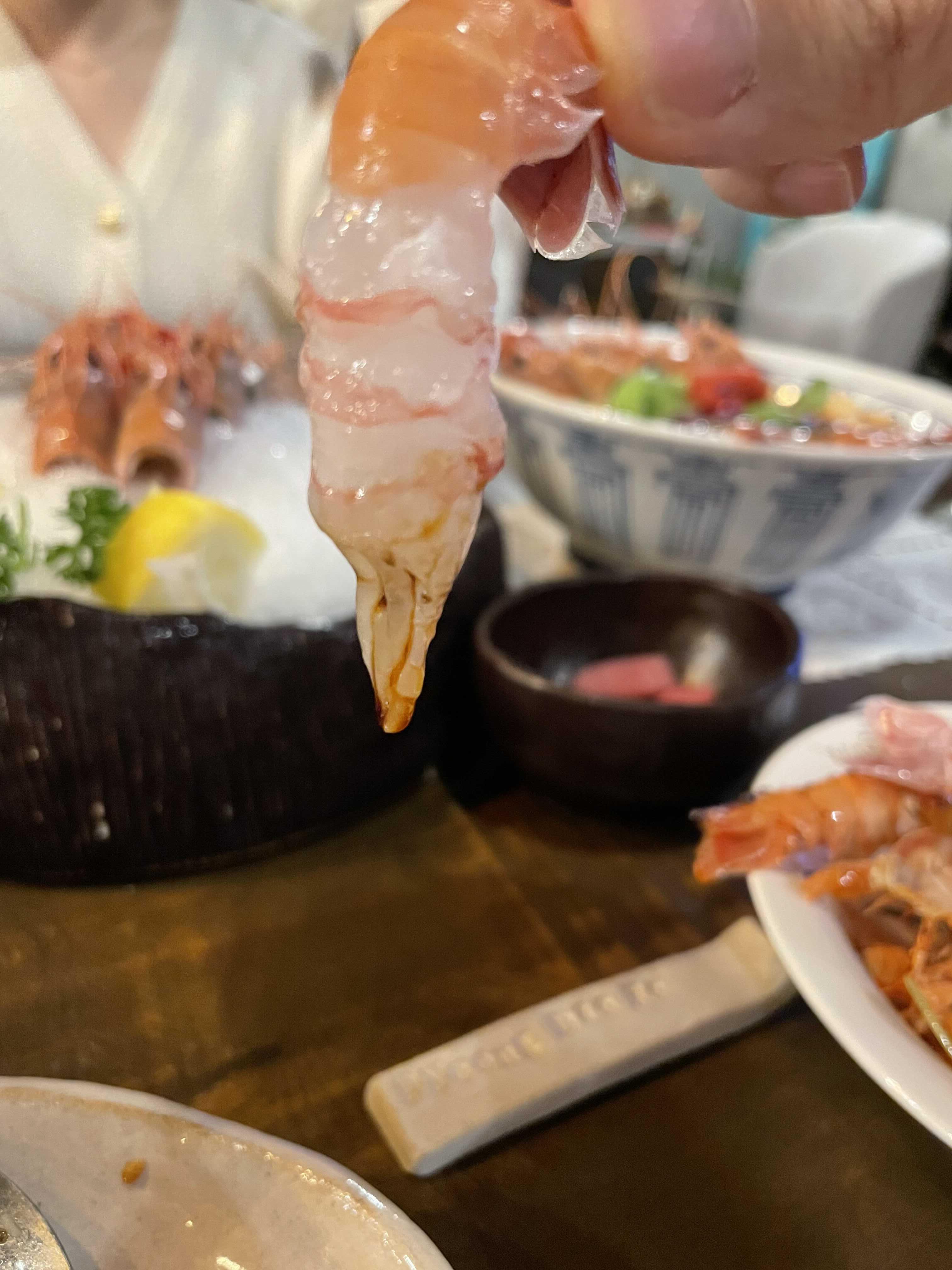 사진으로는 양이 어떻게 보이는지 모르겠지만, 다른 곳보다 비교적 저렴한 가격에 딱새우 사시미를 먹을 수 있었고, 딱새우 사시미를 주문한 테이블은 딱새우를 다 먹고 나면 딱새우를 넣어서 라면을 콩나물과 함께 넣어 끓여준다고 하는데 그것도 엄청나게 기대했었다.