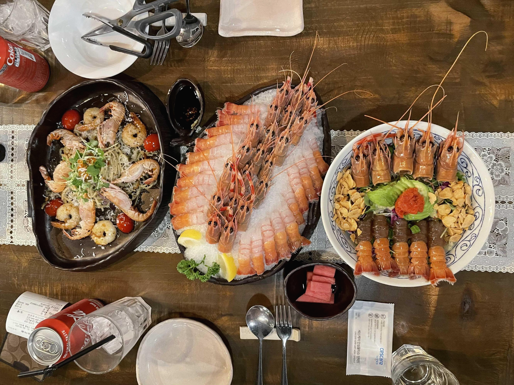 사진으로는 양이 어떻게 보이는지 모르겠지만, 다른 곳보다 비교적 저렴한 가격에 딱새우 사시미를 먹을 수 있었고, 딱새우 사시미를 주문한 테이블은 딱새우를 다 먹고 나면 딱새우를 넣어서 라면을 콩나물과 함께 넣어 끓여준다고 하는데 그것도 엄청나게 기대했었다.