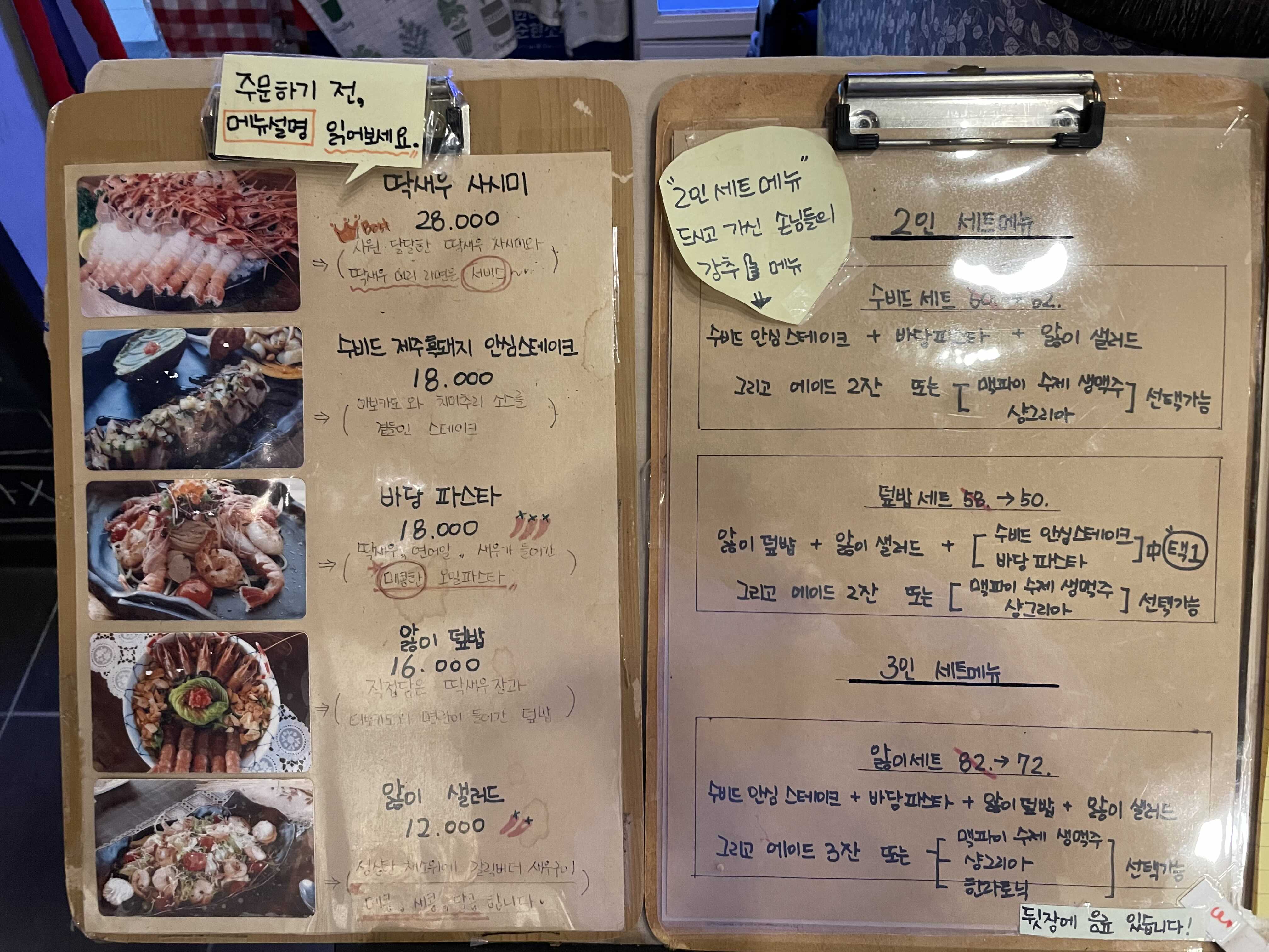 지금부터 딱새우 맛집이라고 알려진 평대 앓이에서 했던 식사에 대해서 내 주관적으로 먹은 후기를 써보도록 하겠다. 철저히 내 돈 내산이며, 그 어떤 감정도 들어가지 않았음을 먼저 알린다.