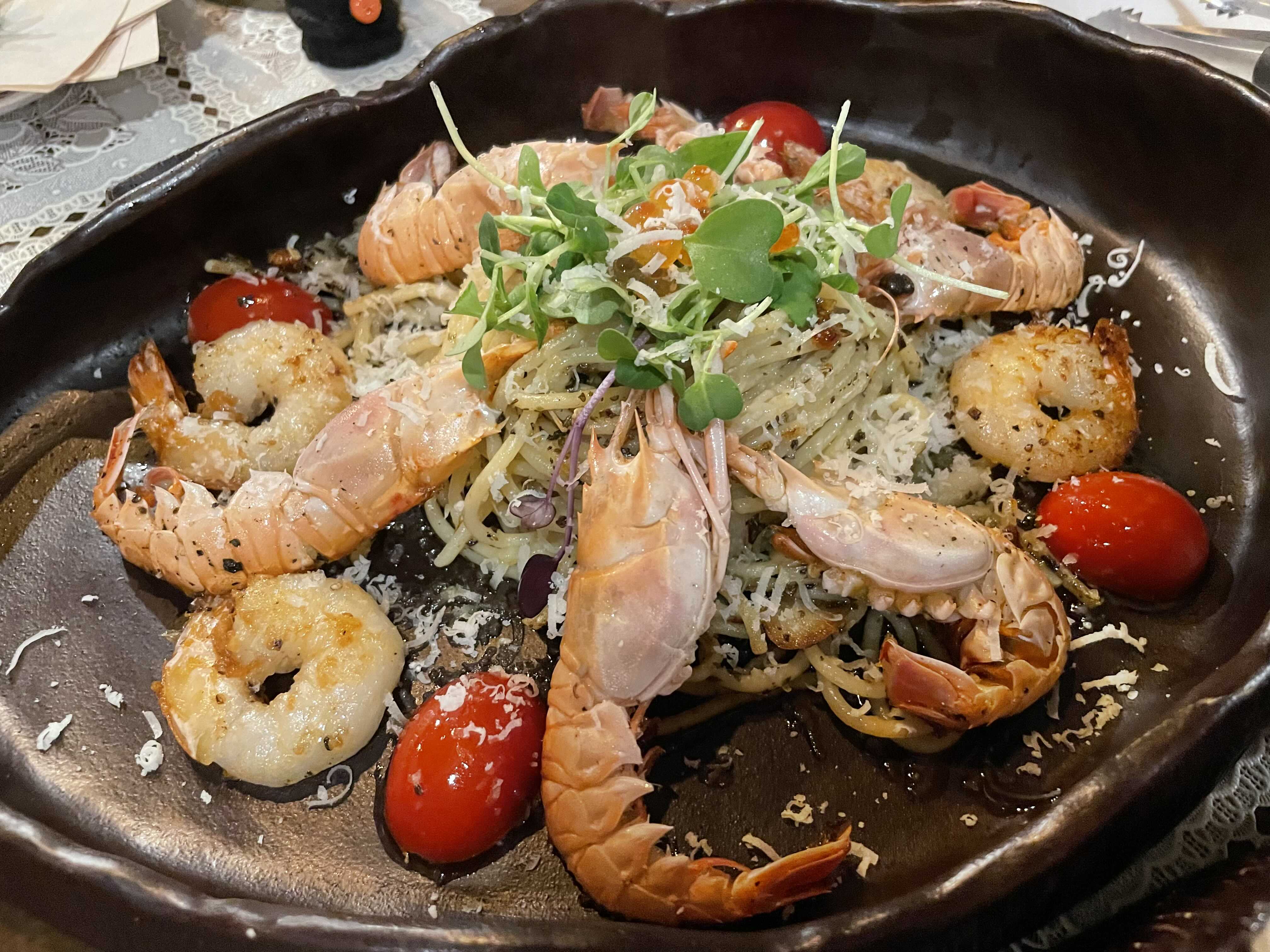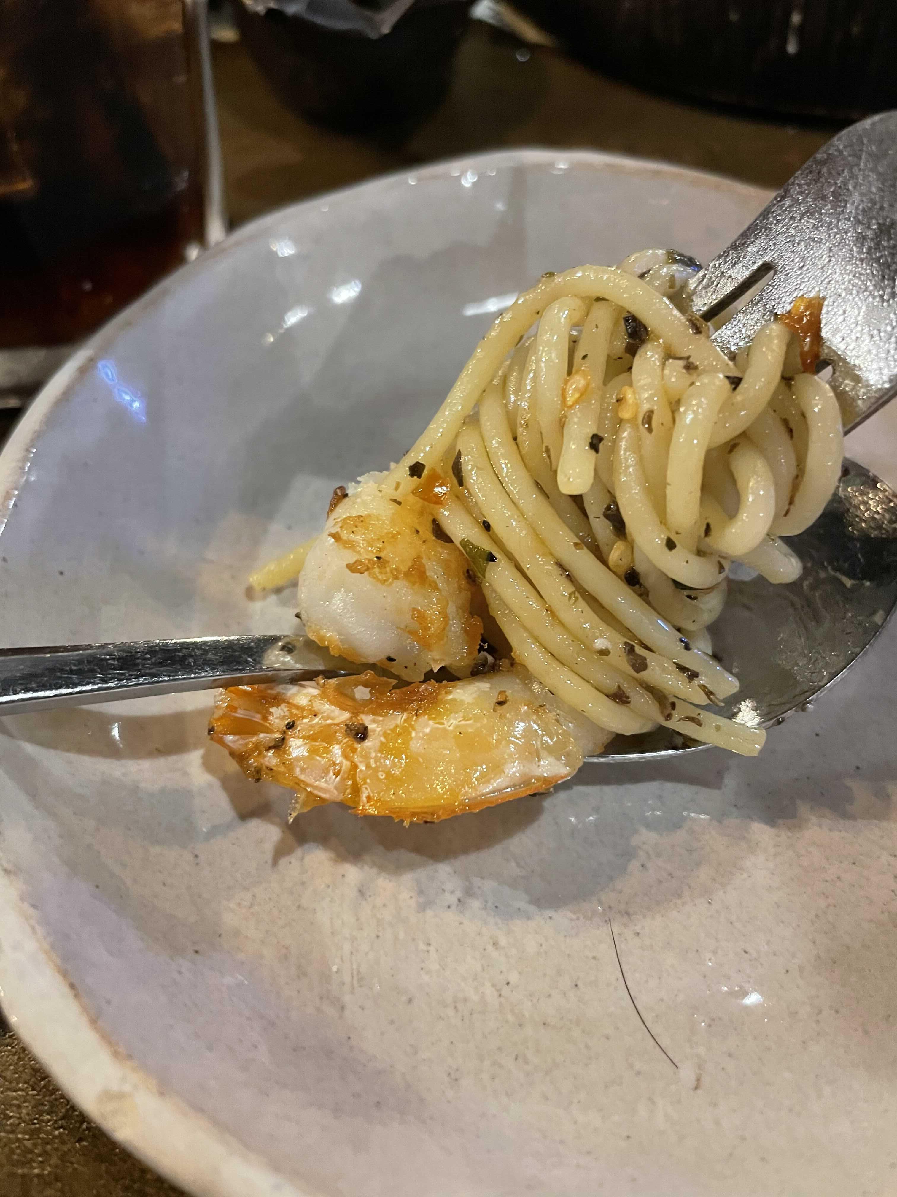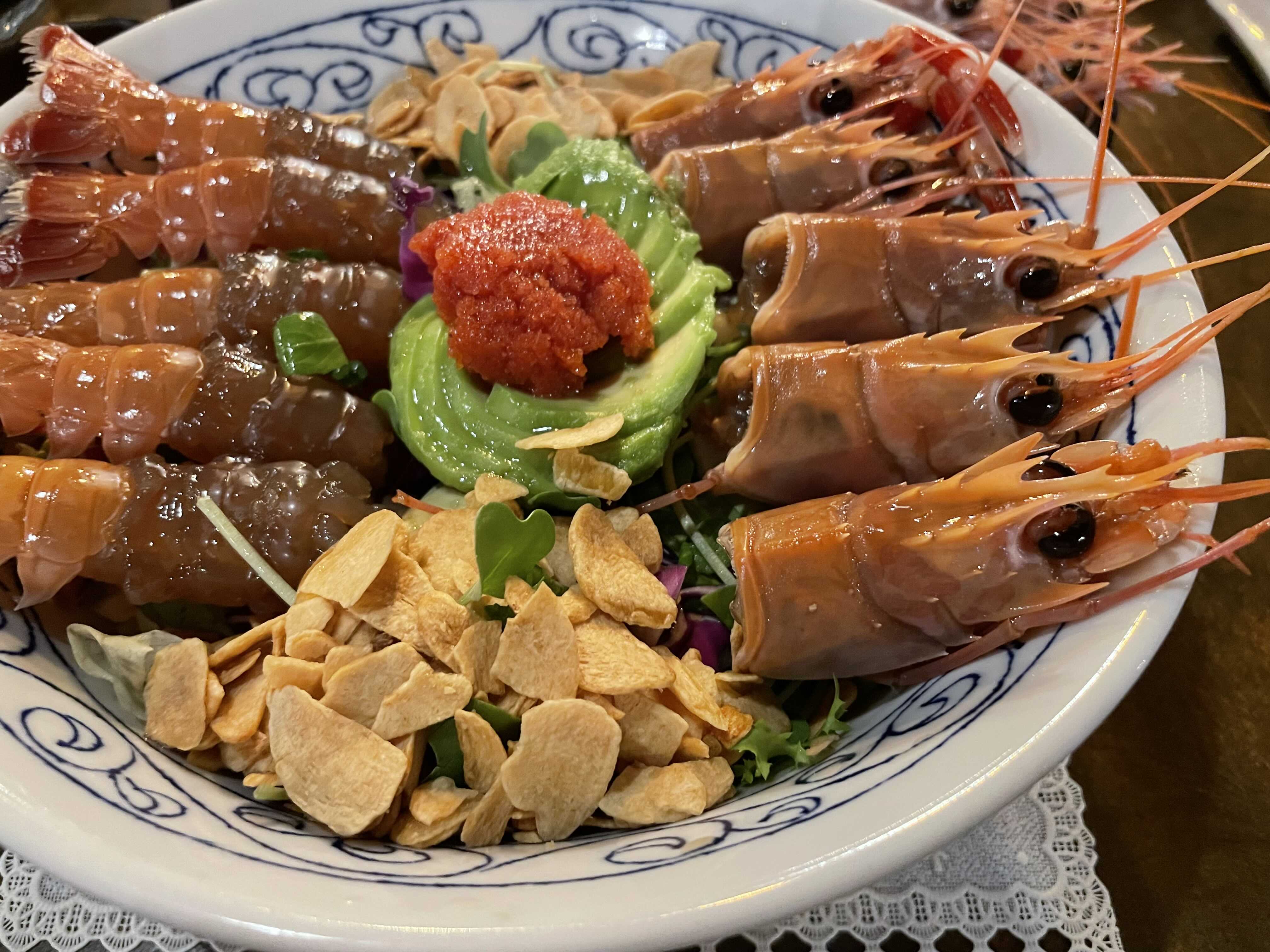 사진으로 다시 봐도 먹고 싶어 지는 비주얼이다. 딱새우 사시미부터 시작해서 파스타와 덮밥까지 정말 어느 하나 모자란 것이 없는 식사였는데, 하나하나 살펴보도록 하겠다.