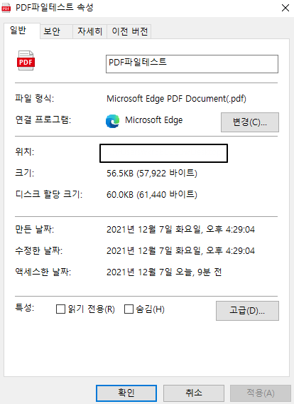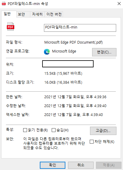 기존 PDF파일의 용량이 56KB였던 반면에 사이트를 통해서 줄이고 난 뒤의 용량은 15KB가 된 것을 알 수 있다.