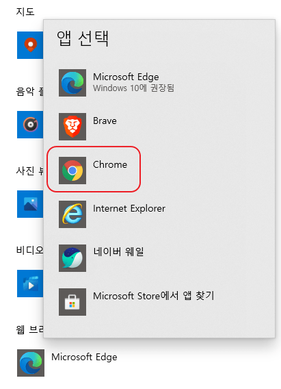 윈도우 10 설정을 통해 기본 브라우저 변경