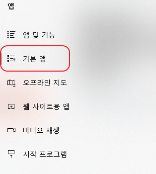 설정 창이 뜨고 여러 항목이 나오는데 그 중에서 <앱> 항목을 클릭한다. 해당 항목을 클릭하면 창 왼쪽에 여러 하위 메뉴들이 나올 것이다. 그중에 우리는 <기본 앱>을 클릭해준다.