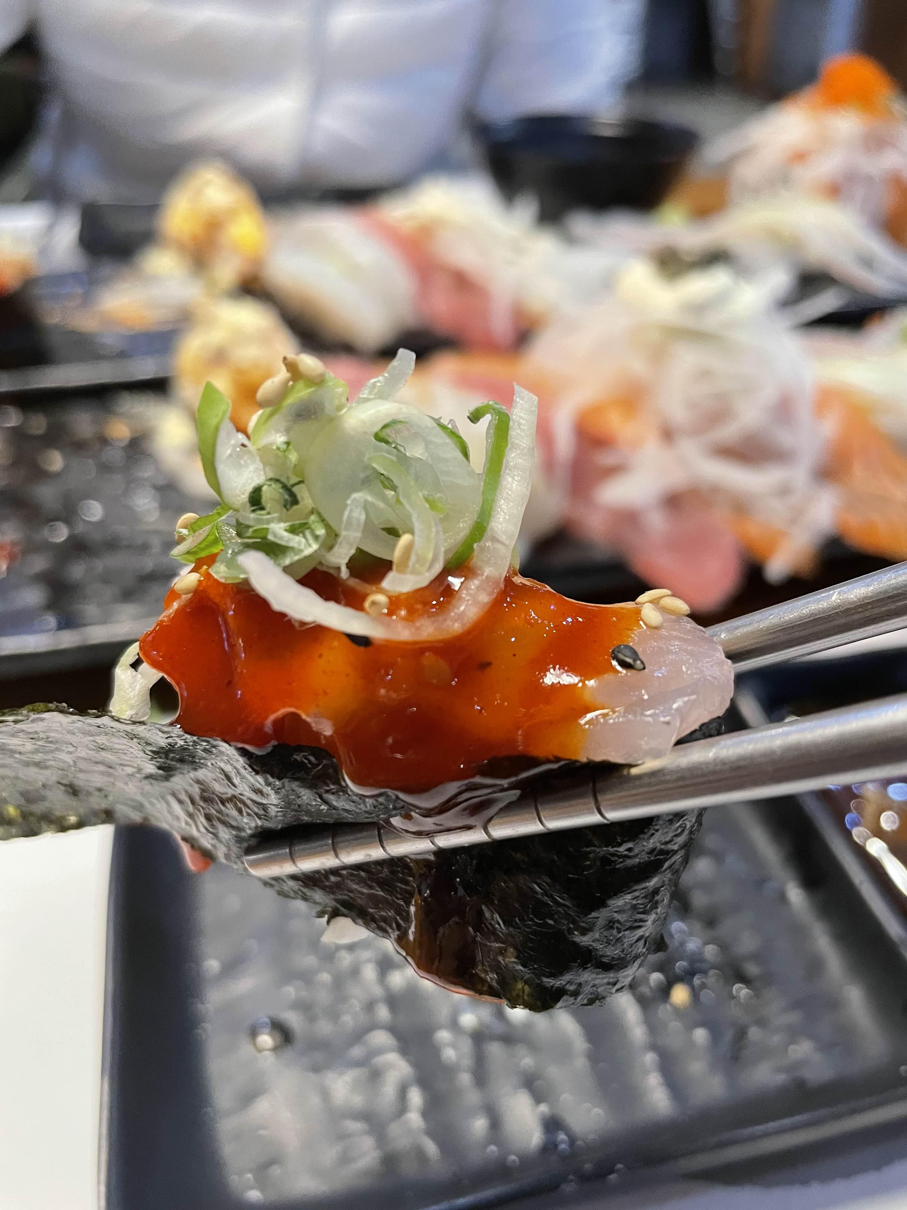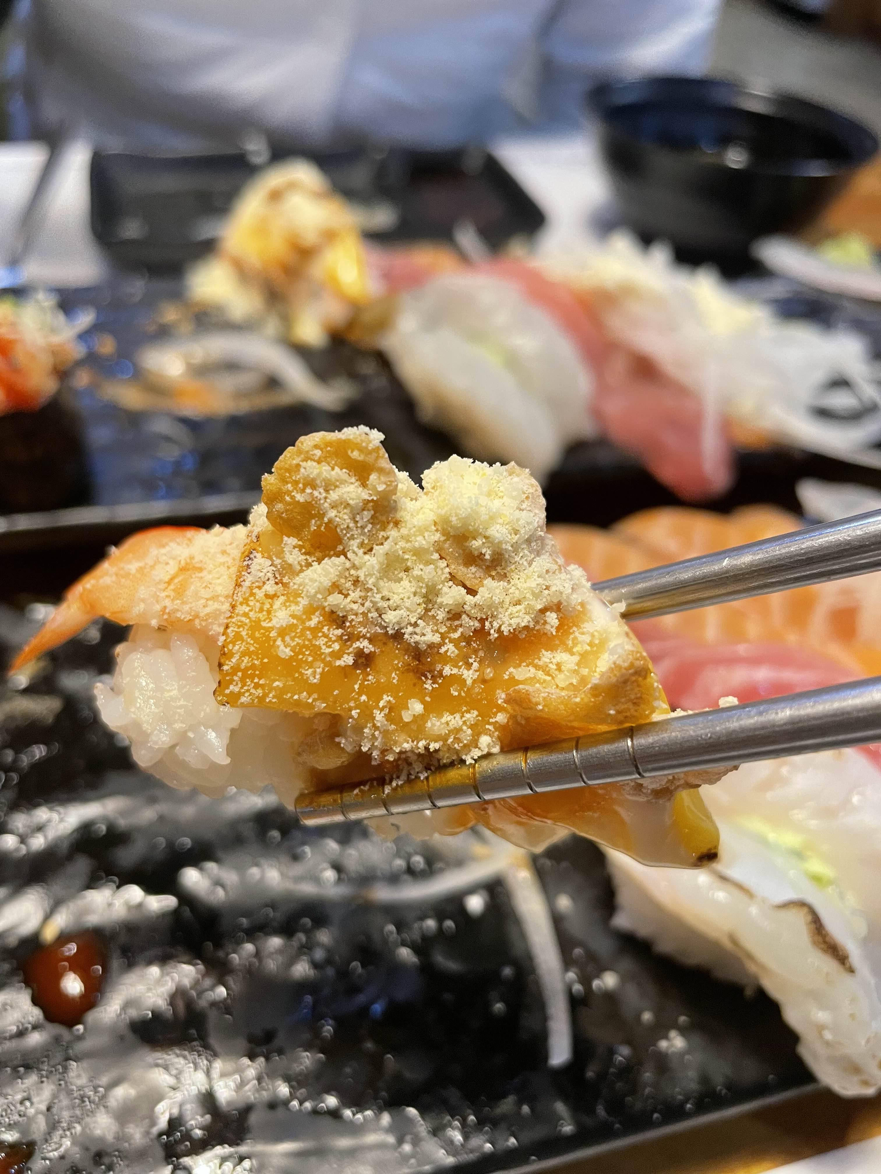 이건 새우 치즈 초밥이었는데, 위에 올라간 가루(?)의 맛도 좋았고 치즈의 풍미와 새우의 맛이 함께 느껴져서 느끼한 음식을 좋아하는 사람들에게는 안성맞춤인 초밥이 아닐까 생각한다.(개인적으로 내 취향은 아니었음)