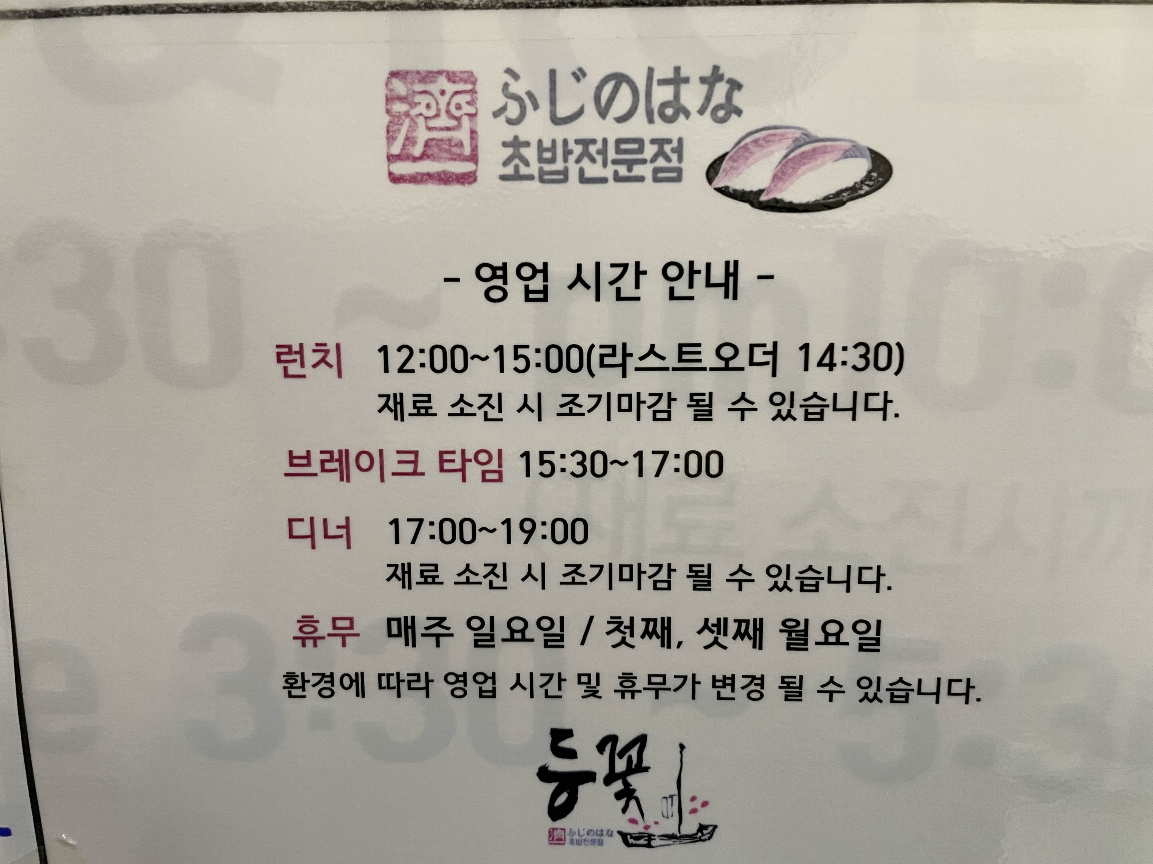 등꽃스시는 단일메뉴 하나만 판매한다. 혹시 자신이 원하는 스시 한 종류만 먹고 싶은 사람이라면 다른 곳을 추천한다. 하지만 다양한 초밥을 한 번에 맛보고 싶은 사람이라면 주저 없이 등꽃을 추천하고 싶다.
