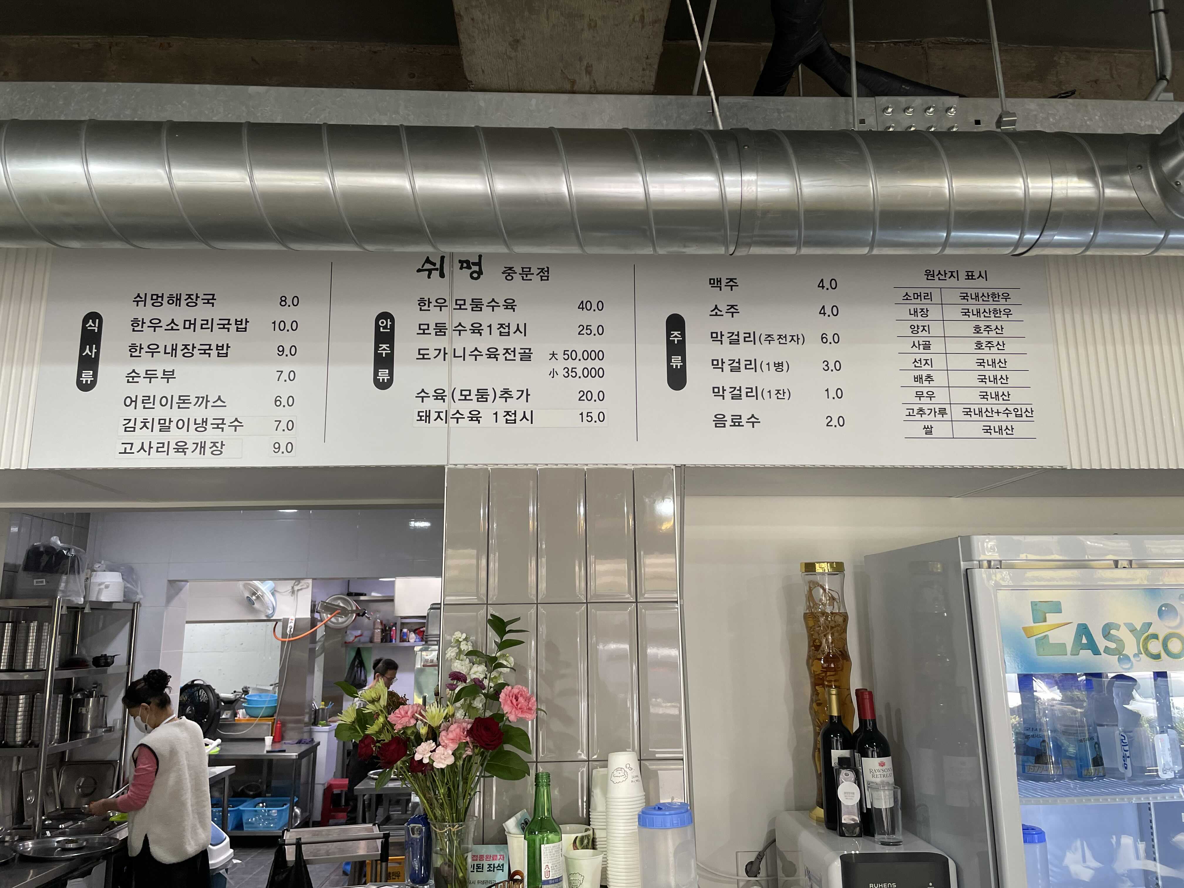 쉬멍해장국 집에는 여러 가지 메뉴가 있는데 사실 쉬멍 해장국이 시그니처인 것 같아서 그걸 먹으려고 했으나, 워낙 내장을 좋아하는 나로서는 한우 내장국밥이라는 메뉴를 참을 수가 없었다.(내장은 못 참지)