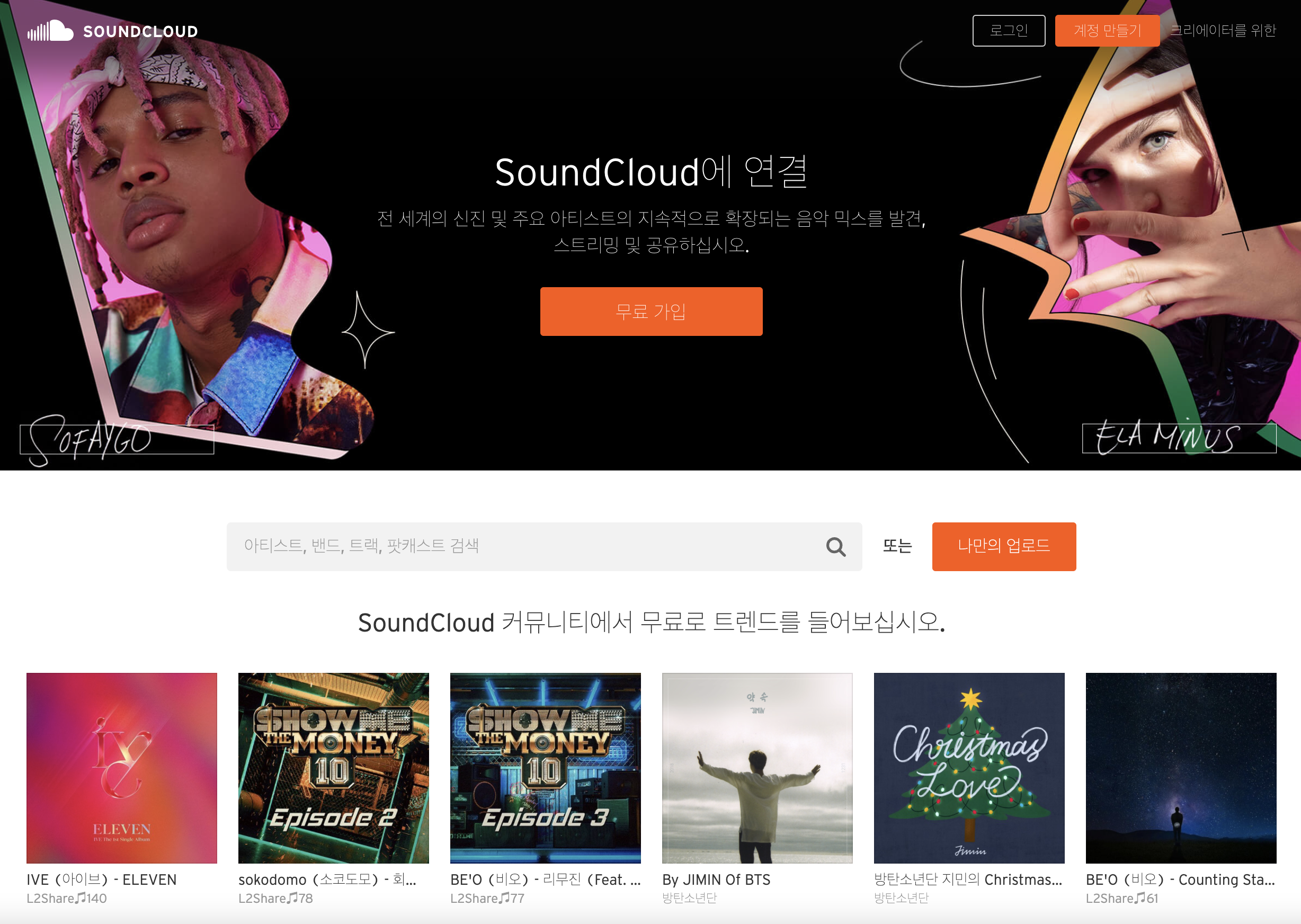 무료로 최신 음원을 다운로드 할 수 있는 사이트 <사운드클라우드>