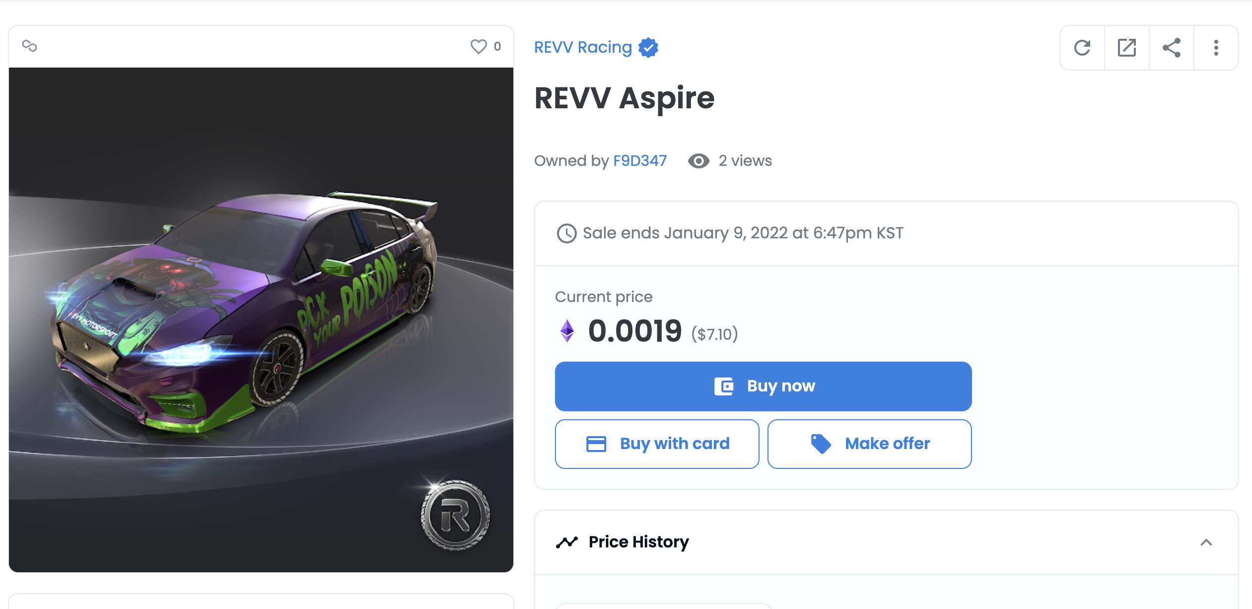 가격 7.1달러의 NFT를 구매해보기로 했다. 대체로 폴리곤 체인을 사용하는 NFT들은 지금 바닥가(floor price)도 저렴하게 형성되어 있는 걸로 봐서 괜찮은 프로젝트만 고른다면 재테크에도 꽤나 도움이 되지 않을까 생각한다.