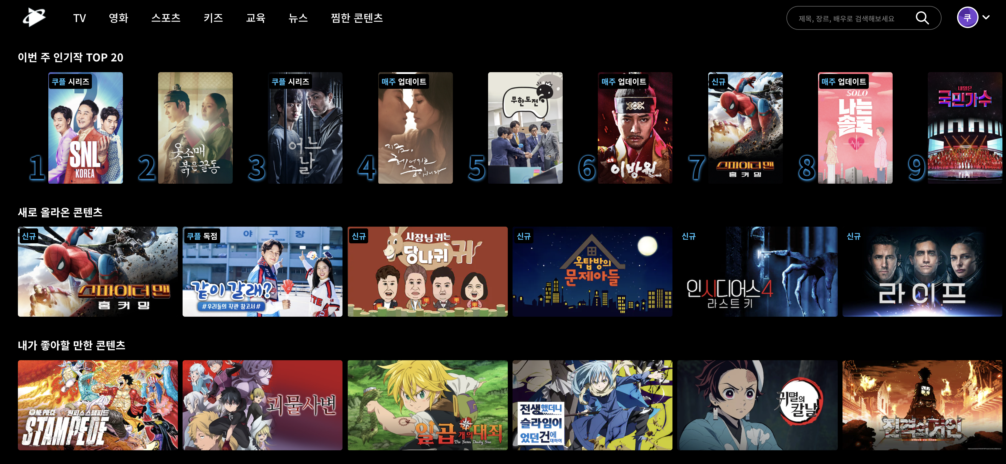 쿠팡플레이는 신작들은 많이 업지만, 슬램덩크와 해리포터 전 시리즈, 그리고 타사 OTT서비스에도 포함되어 있는 각종 TV프로그램들도 대부분 있기 때문에 주로 TV프로그램을 시청하는데 쿠팡플레이보다 비싼 가격에 서비스를 타사에서 이용하던 사람이라면 쿠팡플레이로 이사하는 것도 나쁘지 않아보인다.